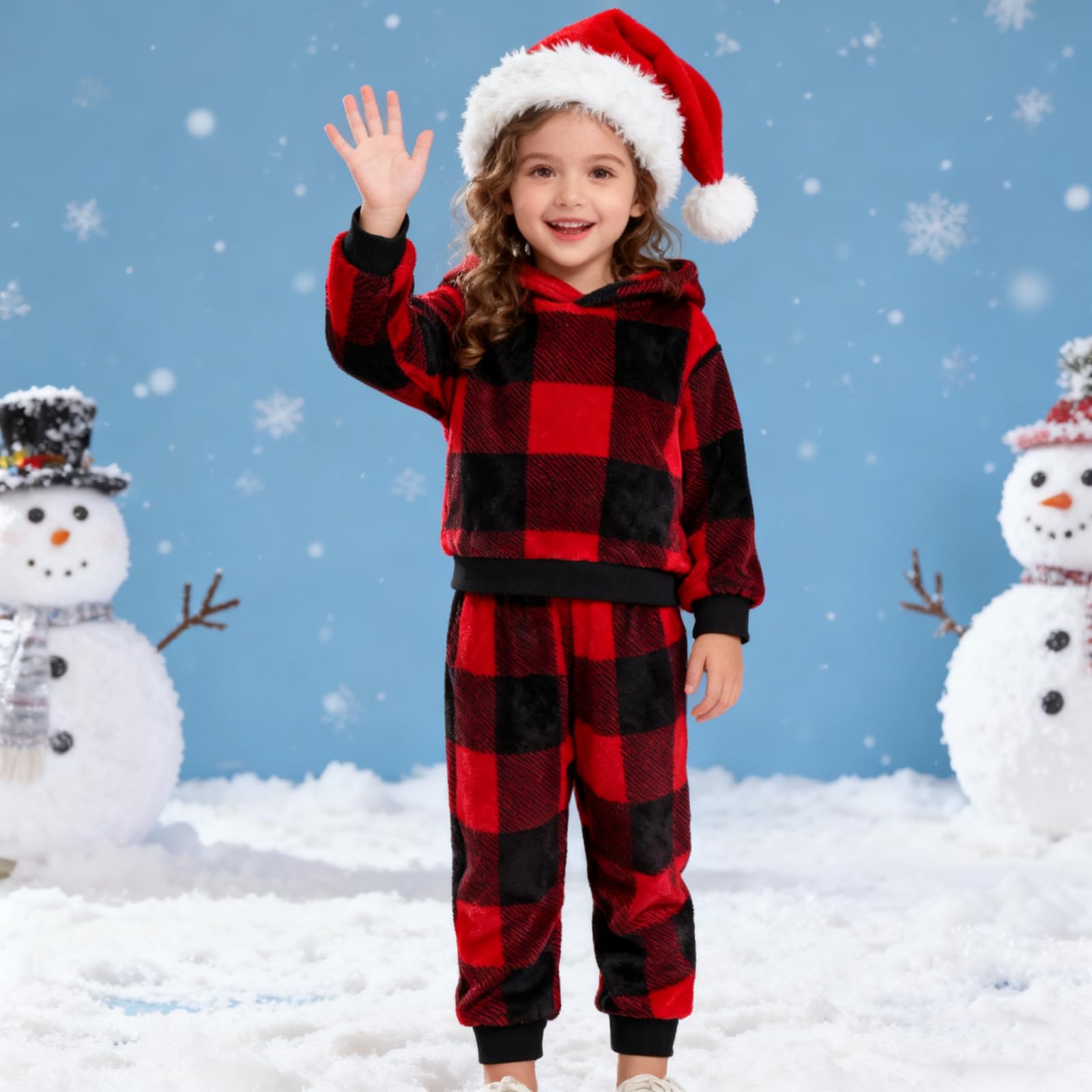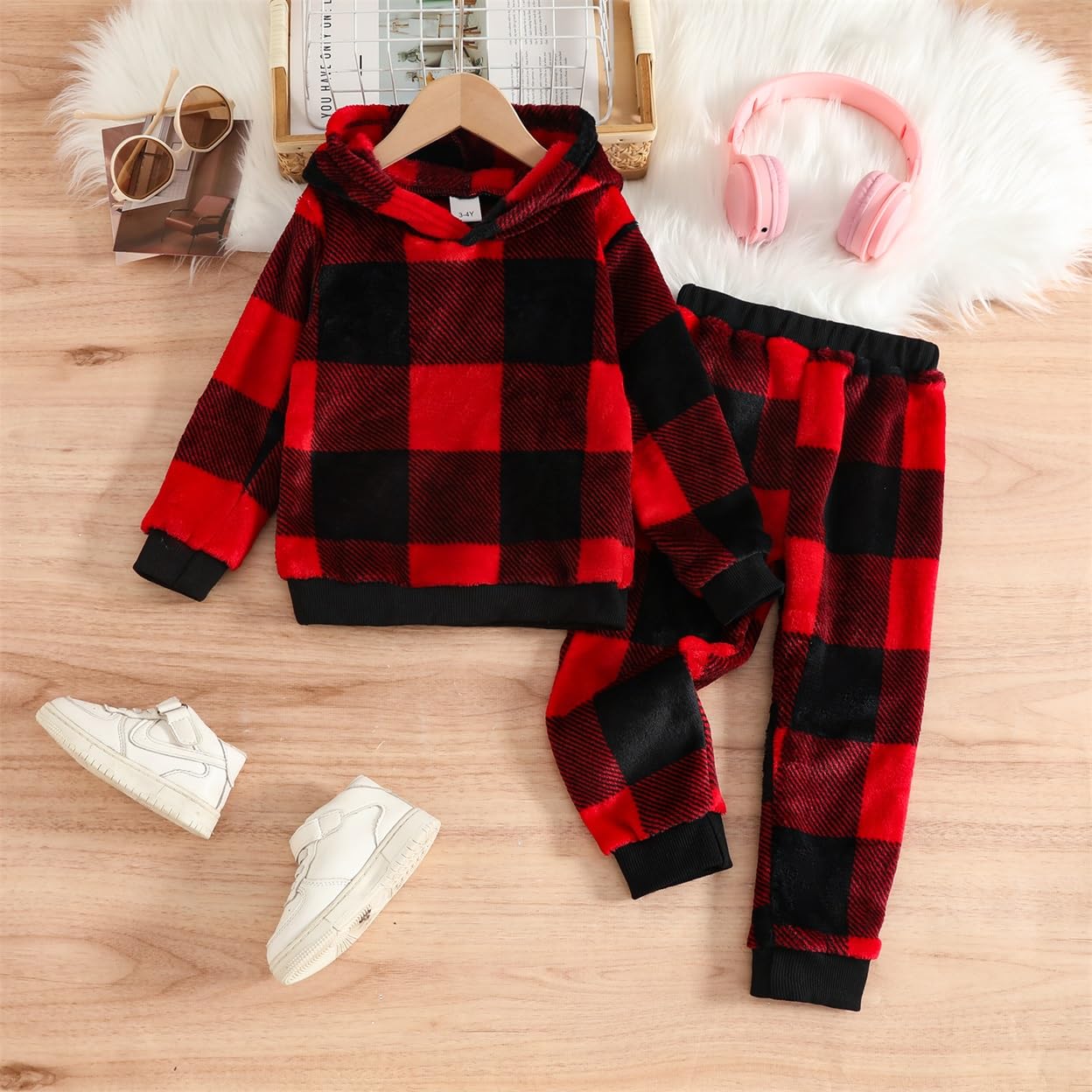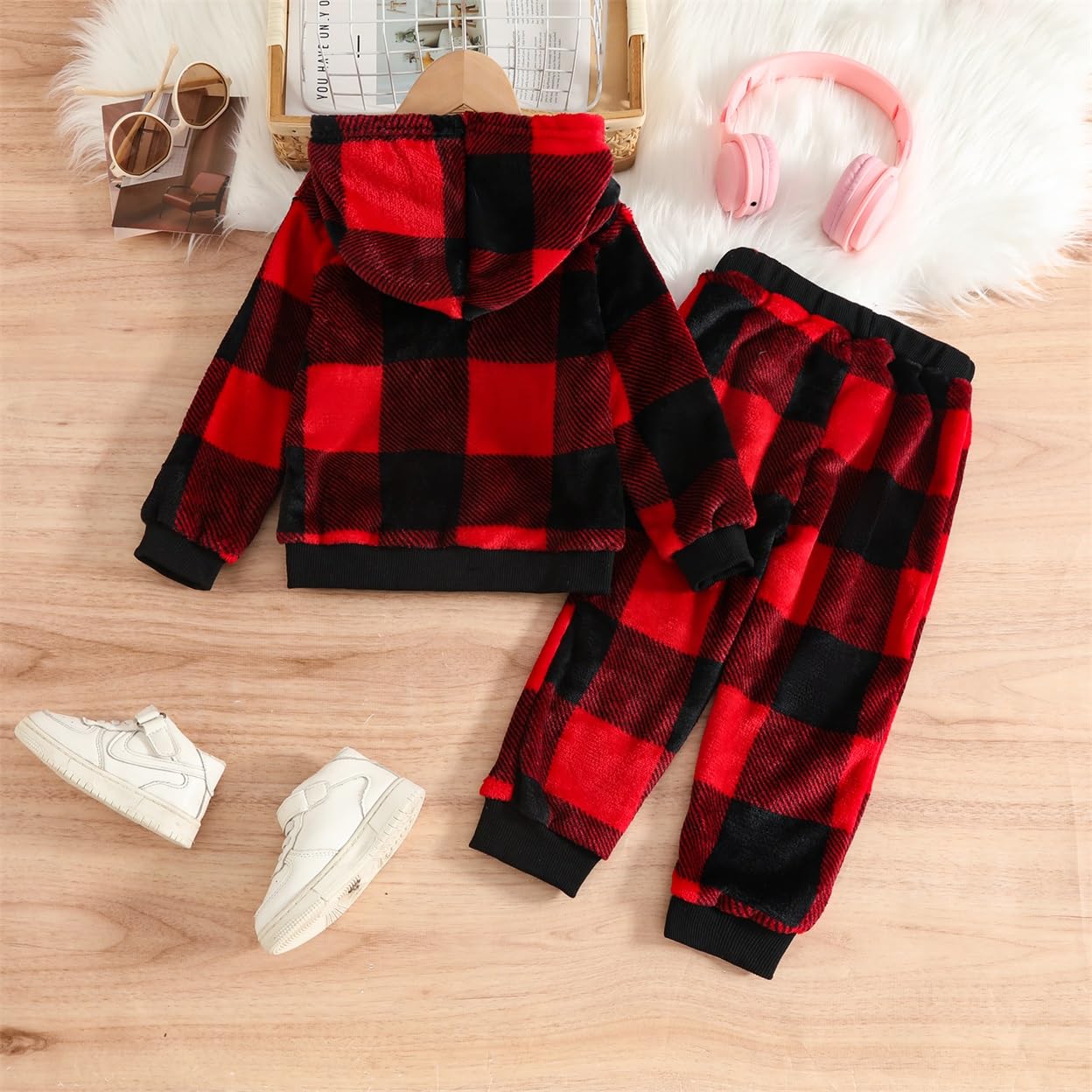 π§¦Design --- Flannel Plaid pants sets. The plaid color matching design is very fashionable. Delicate hoodie tops with matching pants with elastic waist. 2 pcs Fall Winter clothes for baby girls.