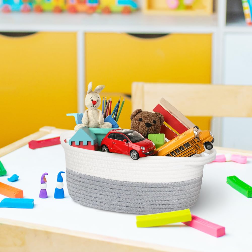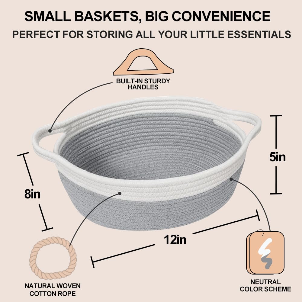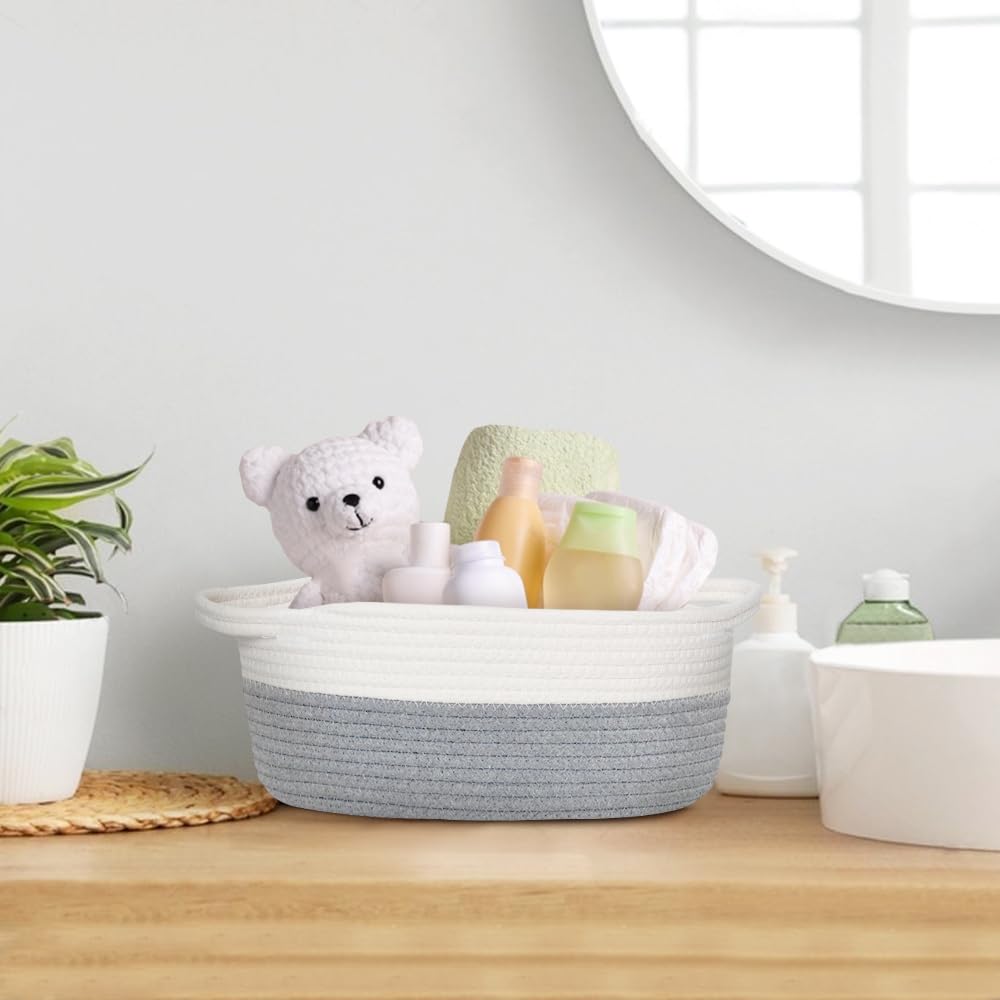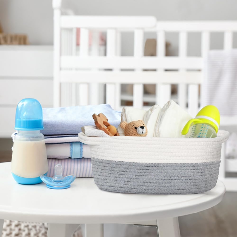 Durable Cotton Rope Storage Basket: Made from high-quality, natural cotton rope, this baskets for decor is soft yet sturdy, perfect for organizing small items like diapers, baby clothes, toys, towels, or pet supplies. The soft material ensures it's safe for babies and pets, making it an excellent option for a baby basket or toy basket for dogs.