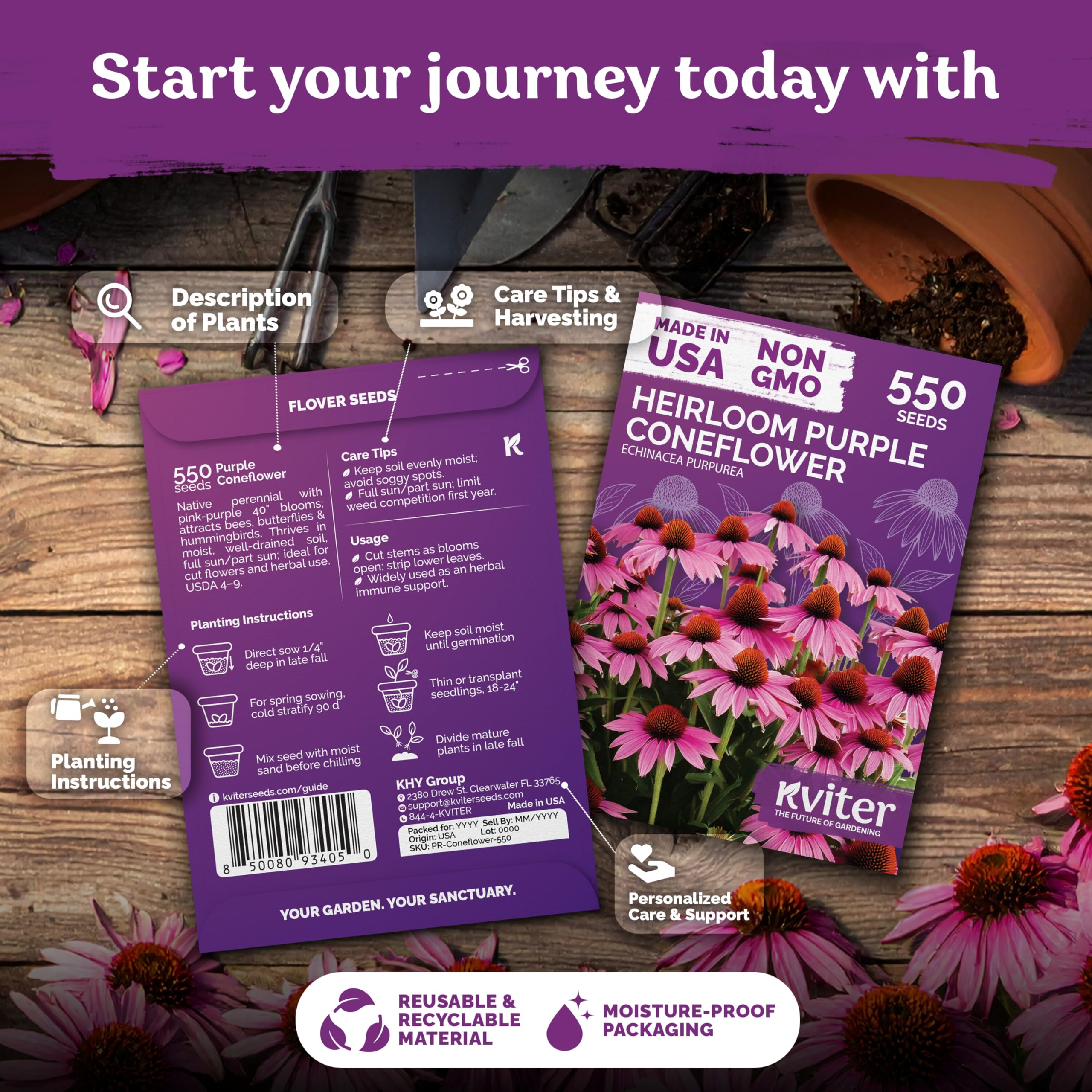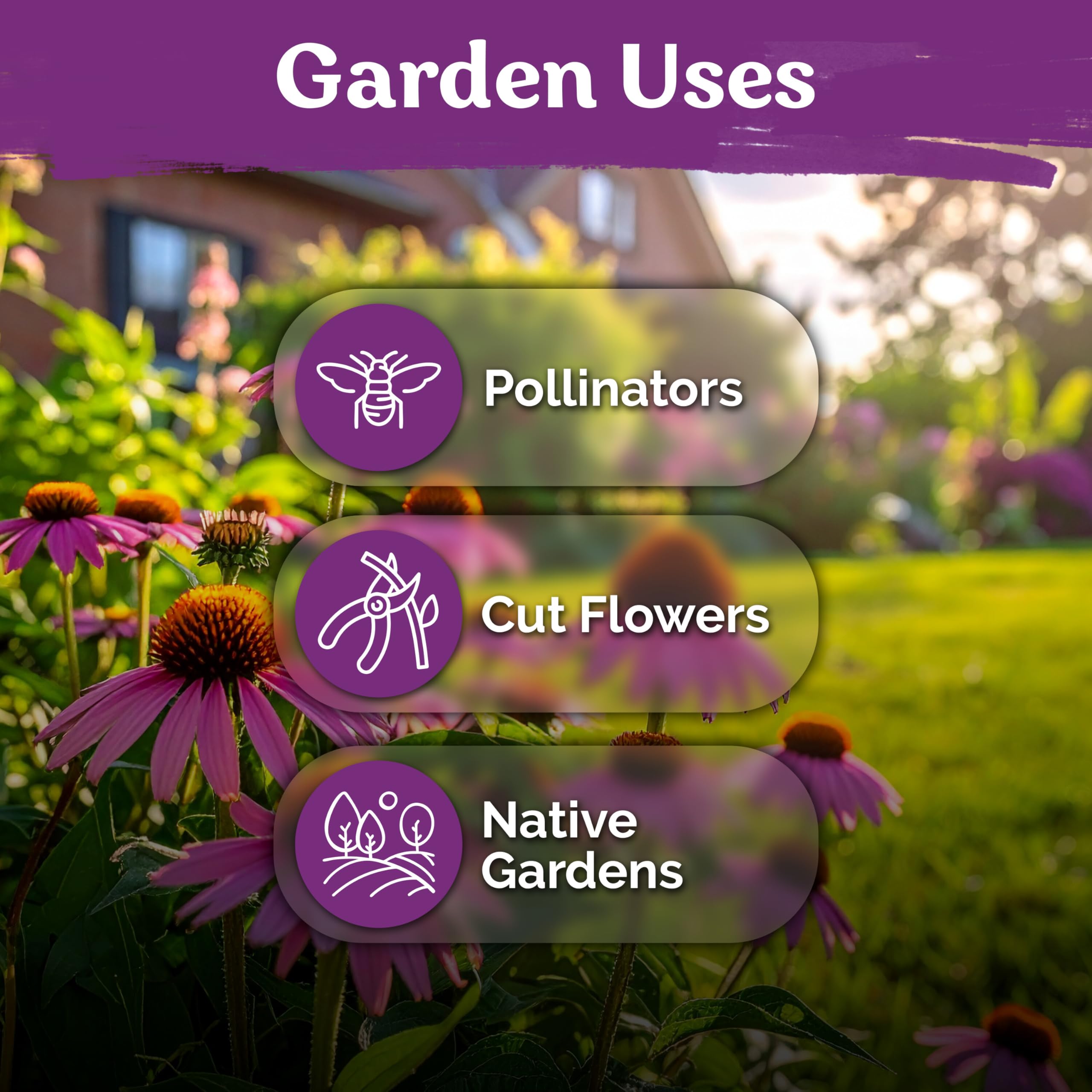 Pollinator Magnet Flowers: cone flowers seeds produce vibrant purple flowers that attract bees, butterflies, and hummingbirds all summer. Excellent plant seeds choice for pollinator gardens and wildflower landscapes.