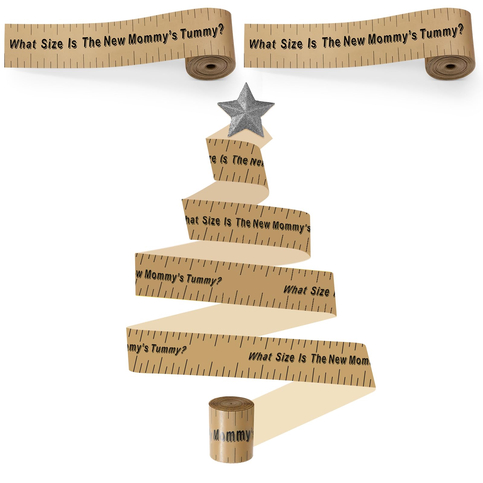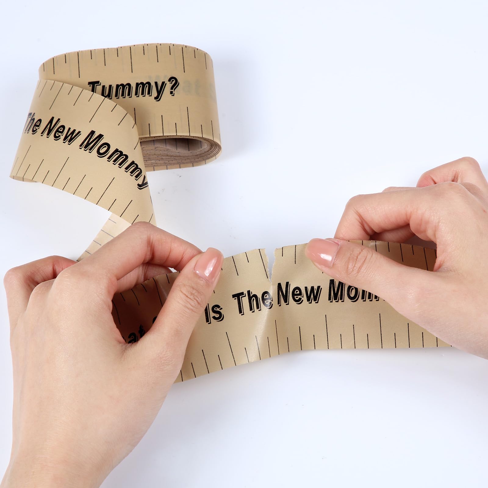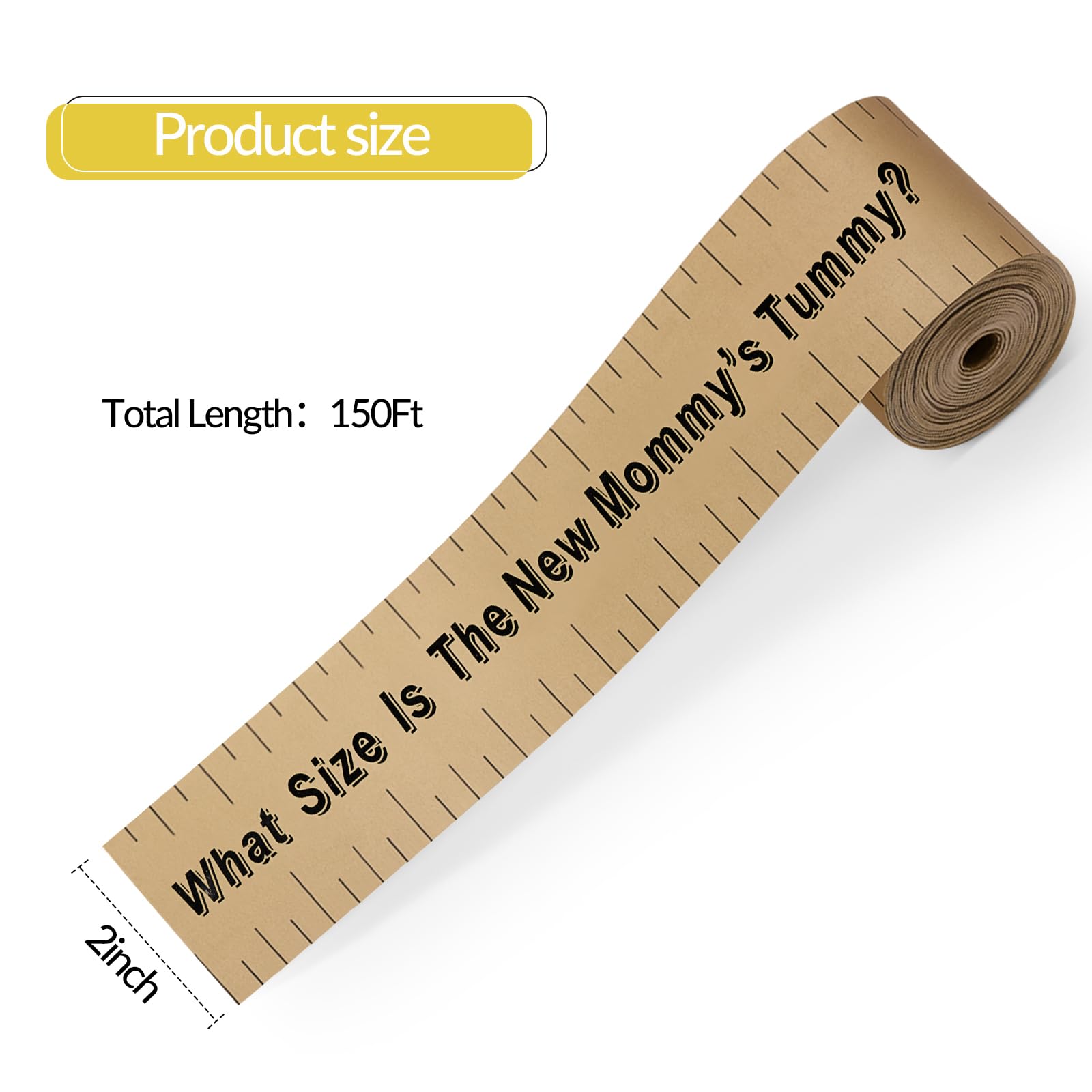 Belly Measuring Tape for Baby Shower: there are 2 rolls of tummy measure tapes in the package, each belly tape is approx 2 inches x 150 feet, which is long enough for mom to measure her tummy over times