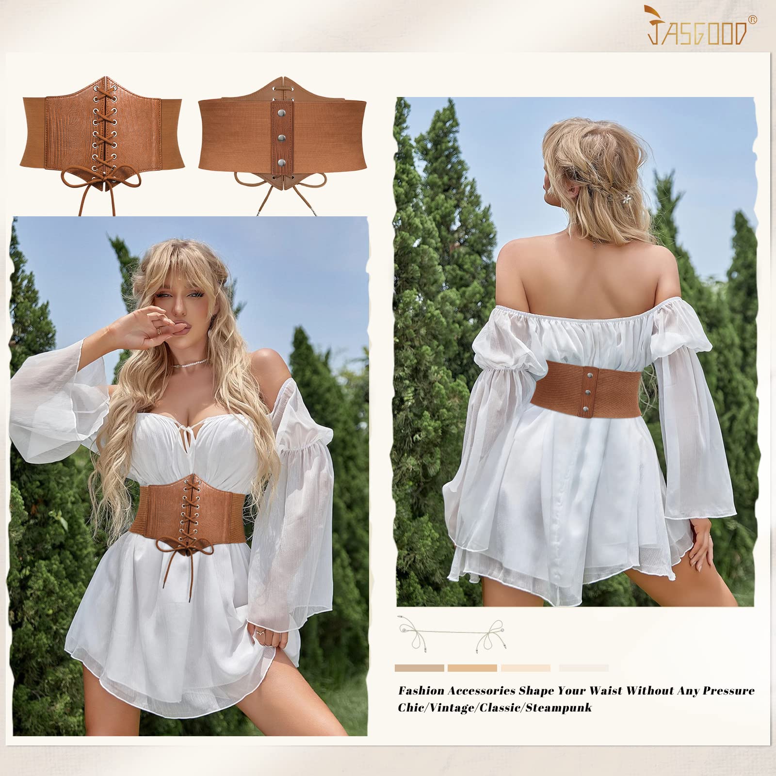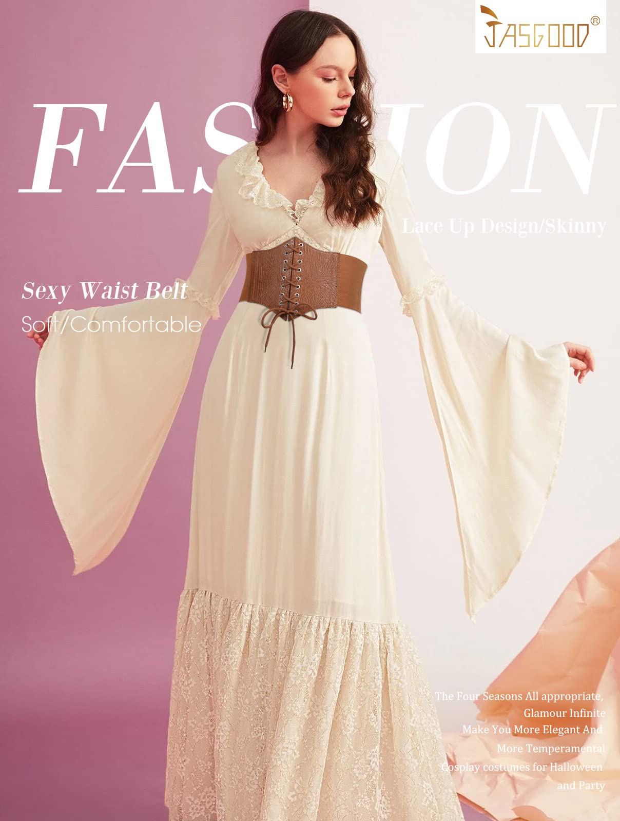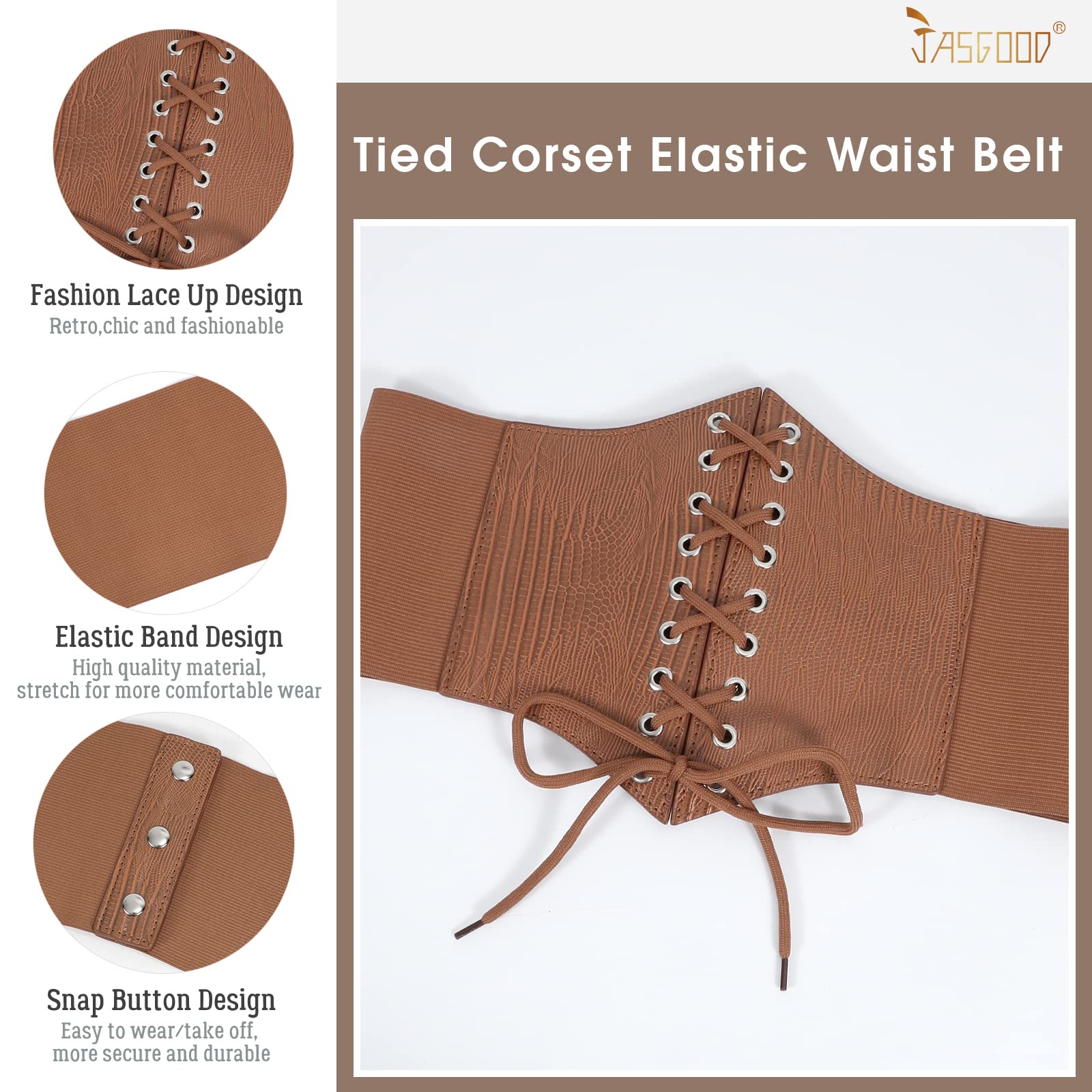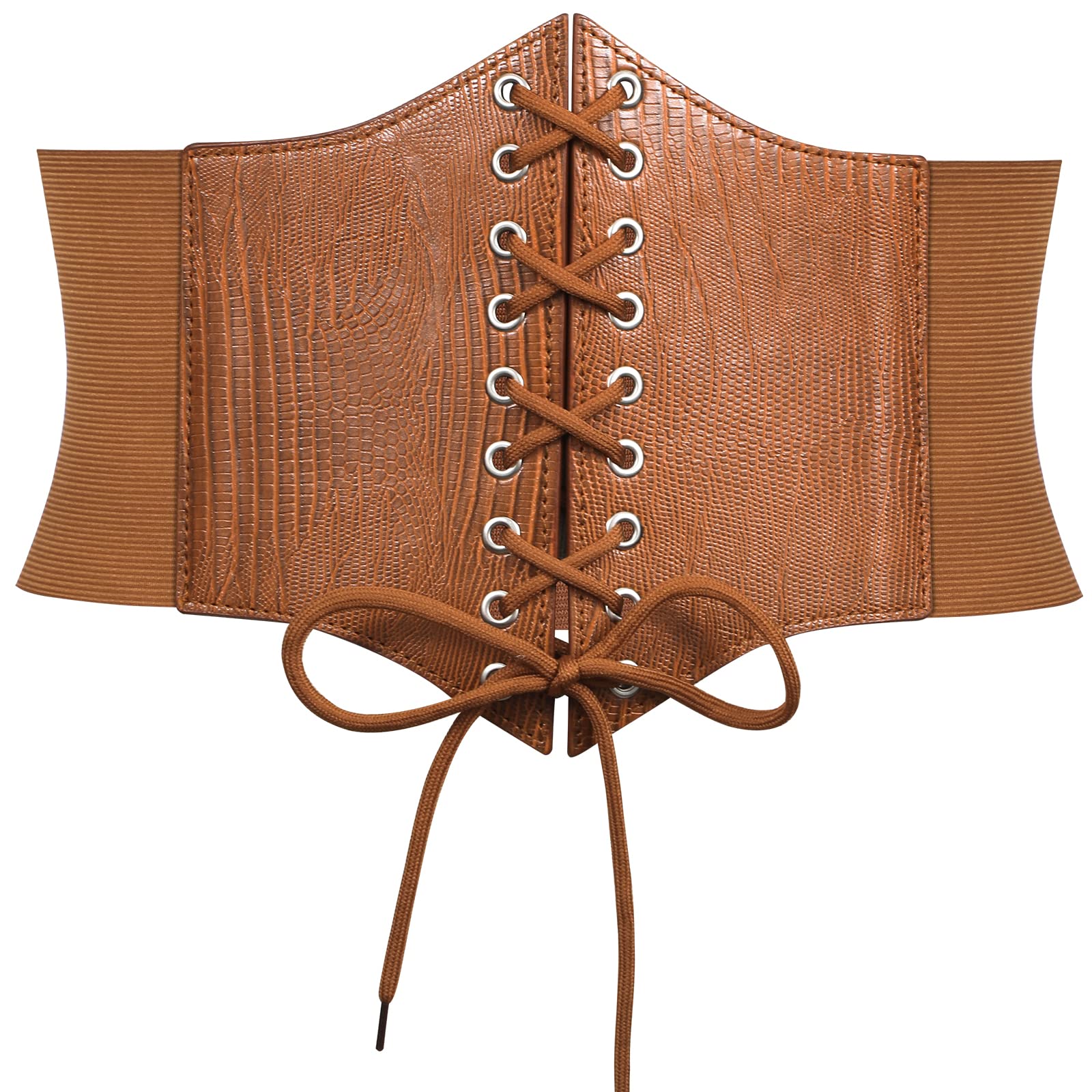 CLASSIC DESIGNβ Classic vintage style leather lace-up tied waspie corset belt, quality PU leather front sewed with well elastic wide band, fastened by 3 snap buttons, which is easy to put on and remove. This waspie corset belt is super comfortable to wear. Flatters your waist. The 7.6" width prevents dress belt from rolling up or rolling down in wearing.