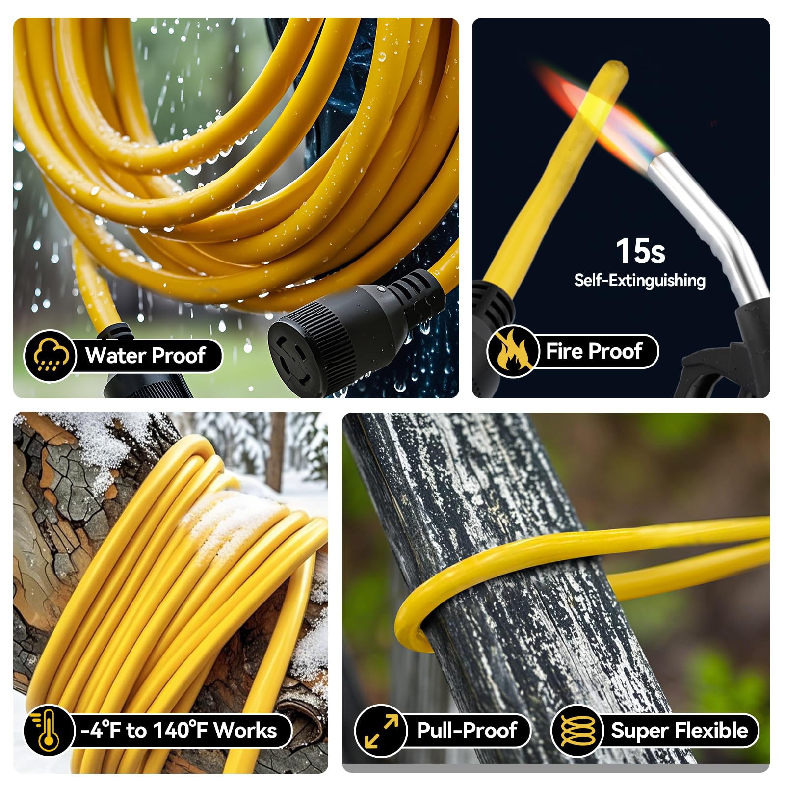 ✅【50 Feet Generator Extension Cord】 This heavy-duty generator extension cord delivers up to 30 Amps / 120 Volts / 7500 Watts, making it perfect for RVs, home backup systems, and portable generators. (Choose from 10 ft, 25 ft, or 50 ft lengths to suit your setup.)