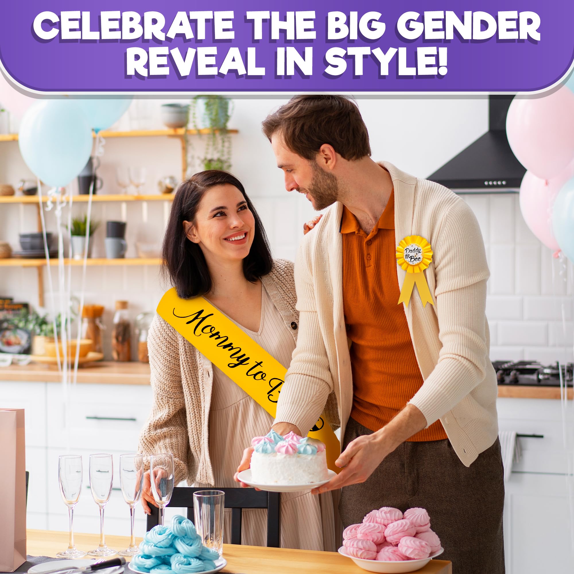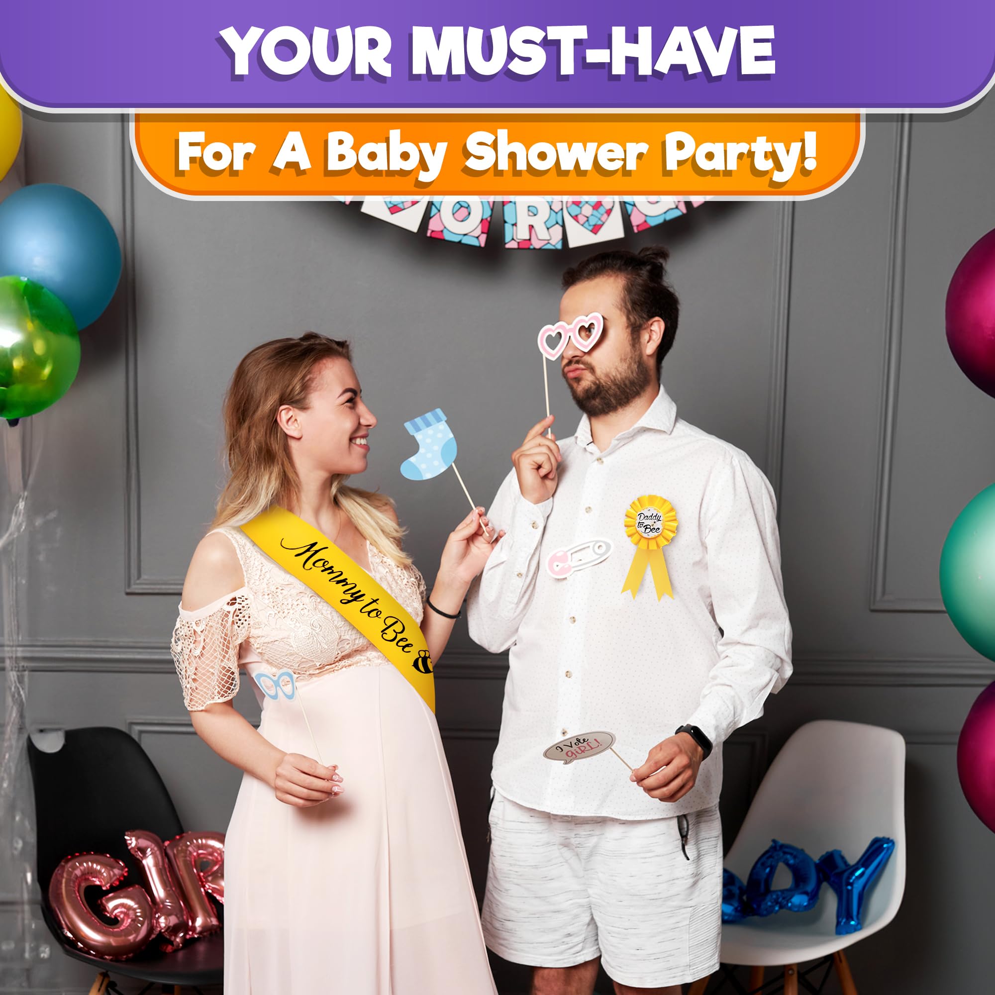 Baby Shower Decor Set: Our gift kit includes a gender reveal sash for mommy and daddy to be pin for celebrating the baby’s arrival. A charming addition to the outfits of expecting parents