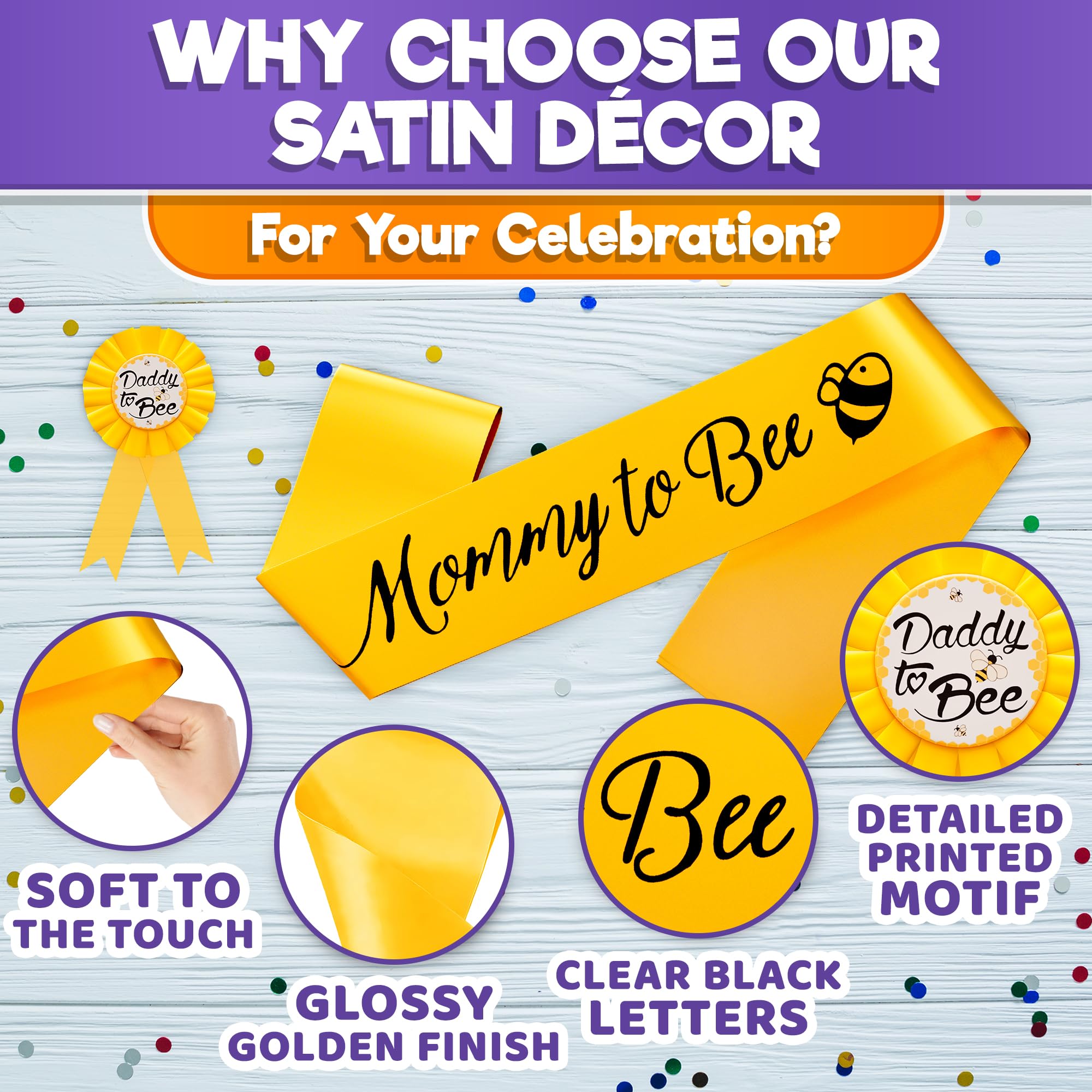 Special Keepsake: Satin of our mom to be sash baby shower is silky, yet durable. With its strong material, our bee themed baby shower decorations will be a sweet keepsake long after the celebration