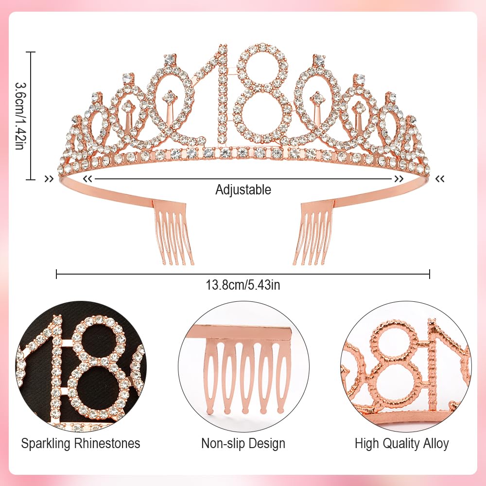 šBirthday Crown for Girls: 18th birthday sash, 18th birthday crown, 18th birthday decorations, 18th birthday gifts idea,18 year old girl birthday gifts,18 year old birthday sash and crown, 18 year old birthday decorations, birthday accessories for women, happy birthday crown thoughtful unique gifts for colleague, educator, teacher, nurse, doctor, godmother. Perfect for special birthday girl party.
