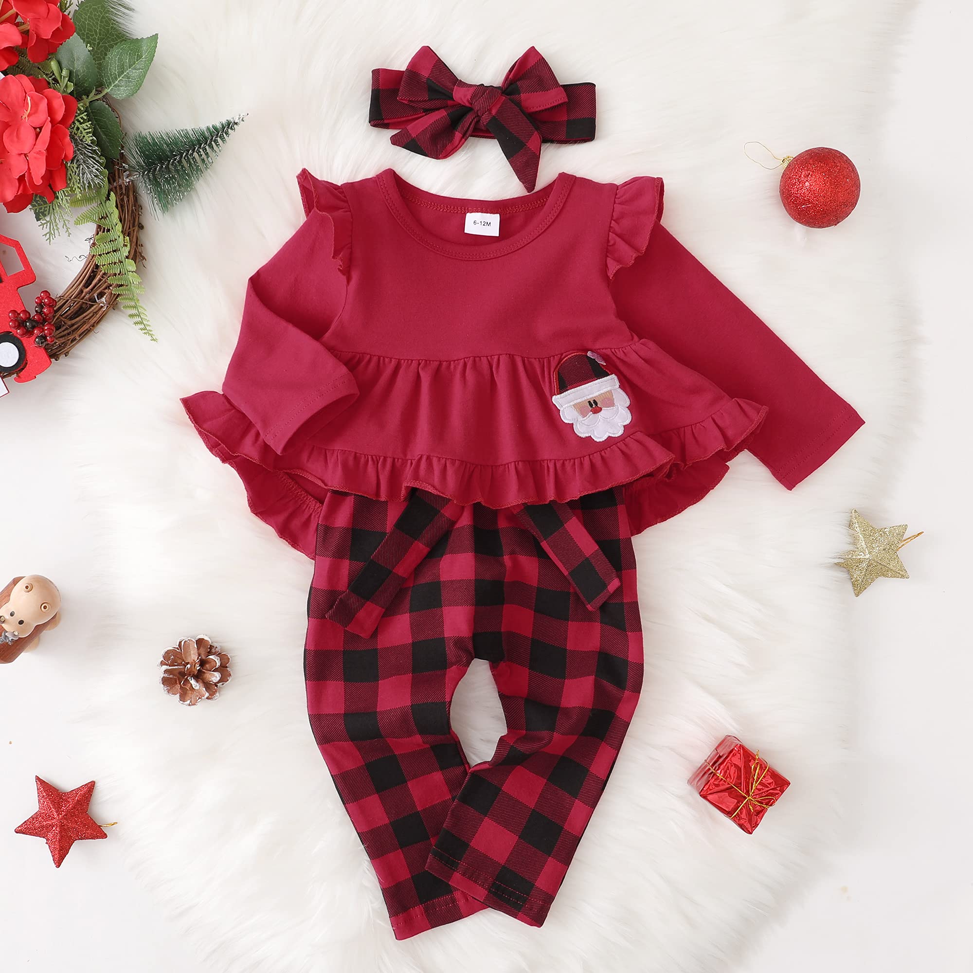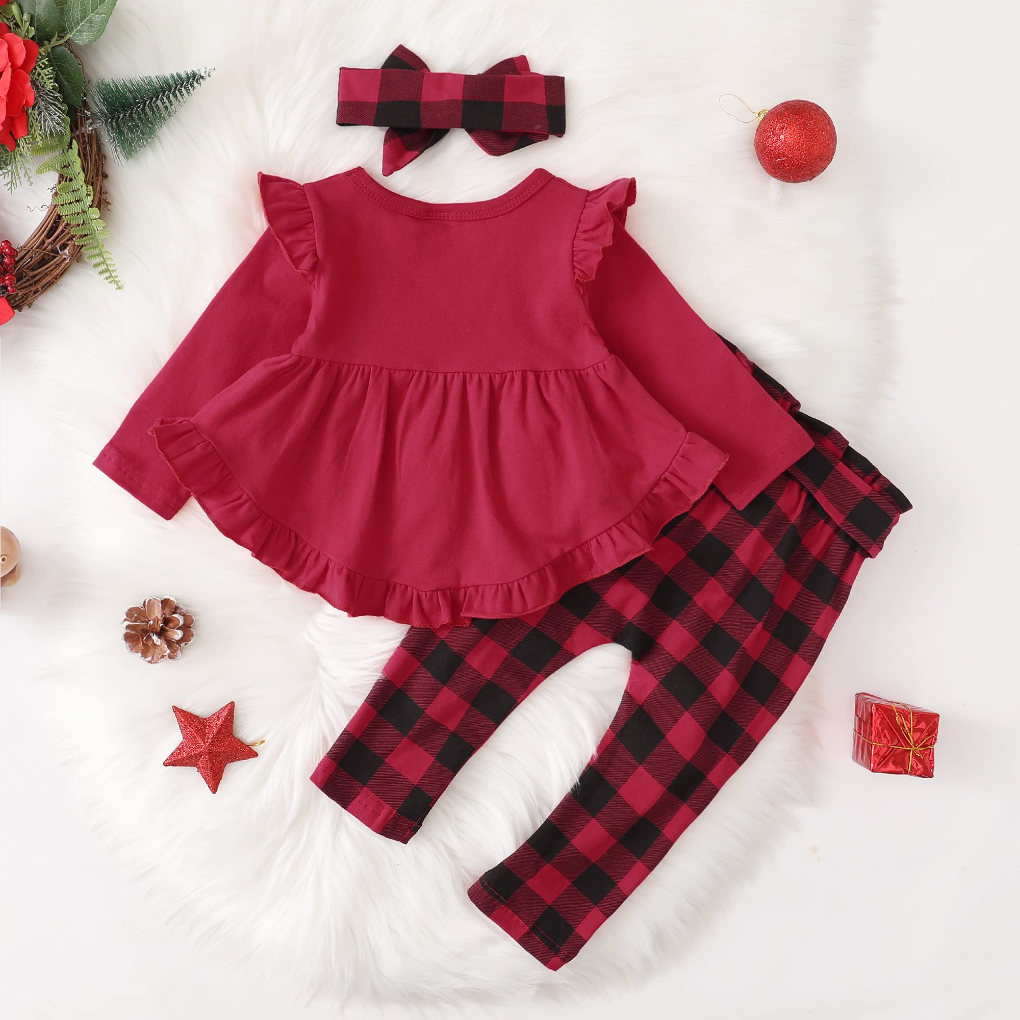 3 Pieces Toddler Little Girl Outift for Fall Winter: 1pc baby girl shirt + 1pc baby girl pants + 1pc untied headband