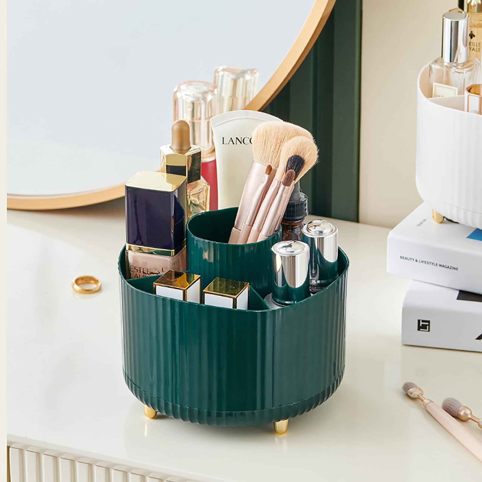 SUITABLE SIZE AND SWIVEL SMOOTHLY: Multifunctional desktop organizer measures 5.9*5.9*5 inches. It has a small footprint but can store all your cosmetics. The beauty organiser rotates smoothly, you don't have to worry about it tipping over or moving.