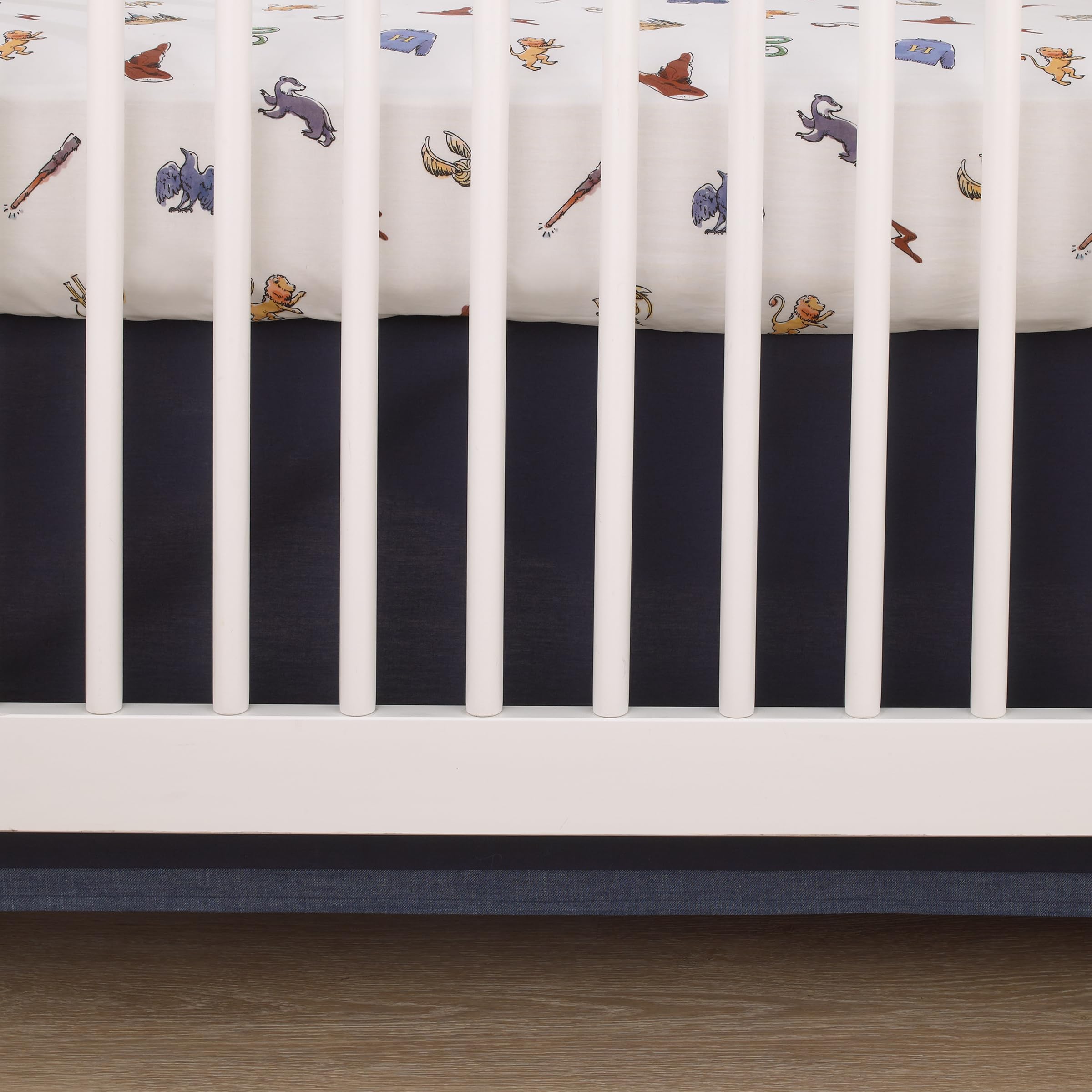The Harry Potter Welcome Little Wizard Fitted Crib Sheet features magical icons