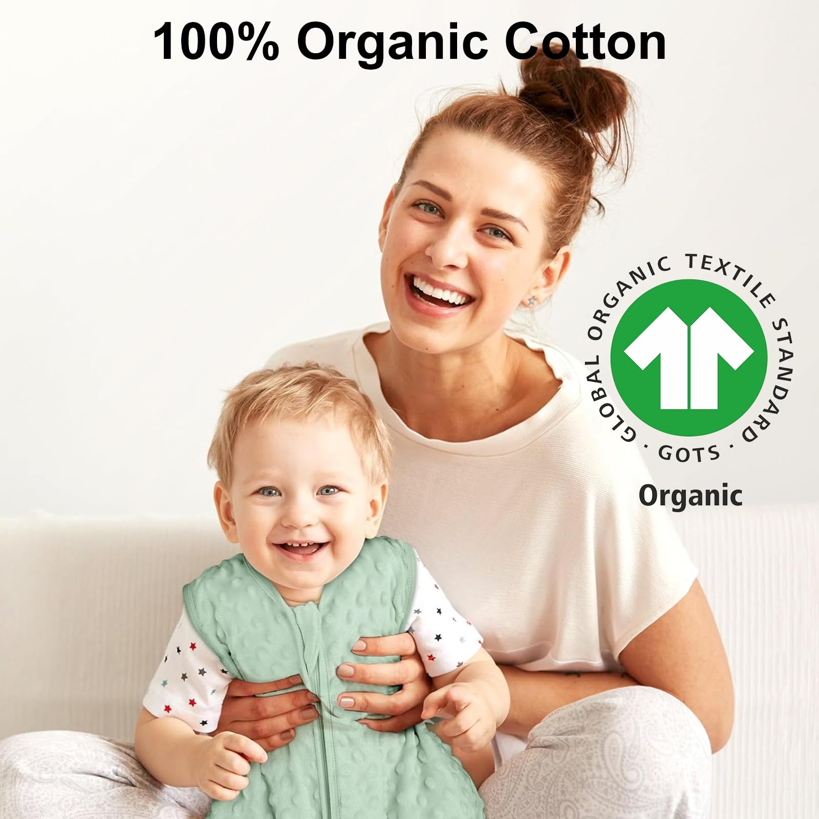 Healthy development - It's plush heart dots surface helps baby fall back to sleep quickly, transform the sleep sacks into an invaluable ally for moms, aiding in lulling their precious ones to sleep while fostering infants'cognitive development. Our baby sleeping sack provides ample room for kicking freely, ensuring your baby stays comfortable throughout the night while promoting healthy hip development.
