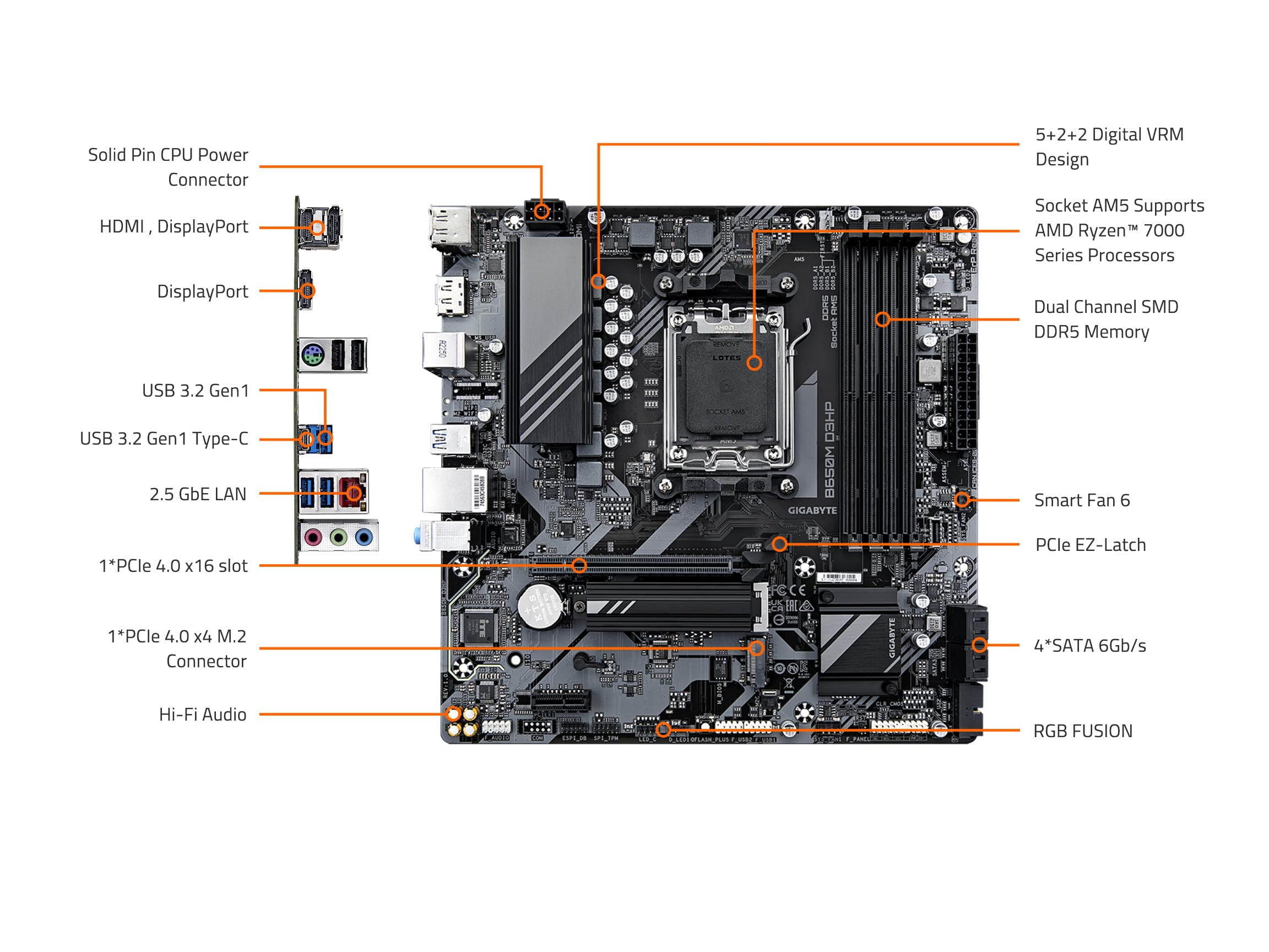 A new era is here. The B650M D3HP supports AM5 Processors and features unparalleled performance. GIGABYTE B650 motherboards come with upgraded power design, high grade storage standards, and outstanding connectivity that enables you to optimize your performance.