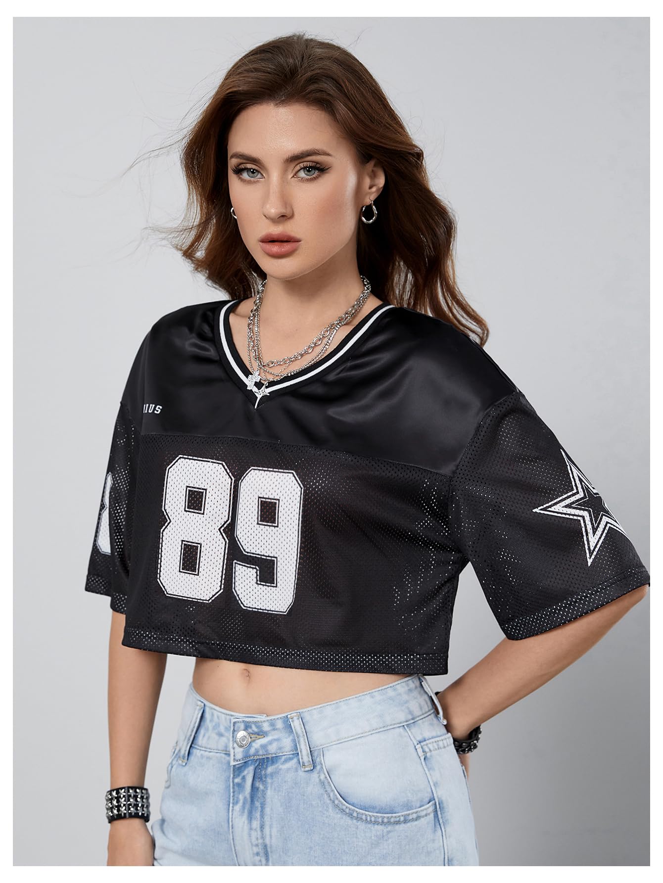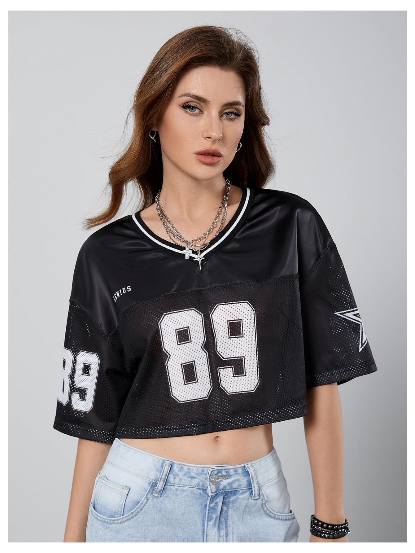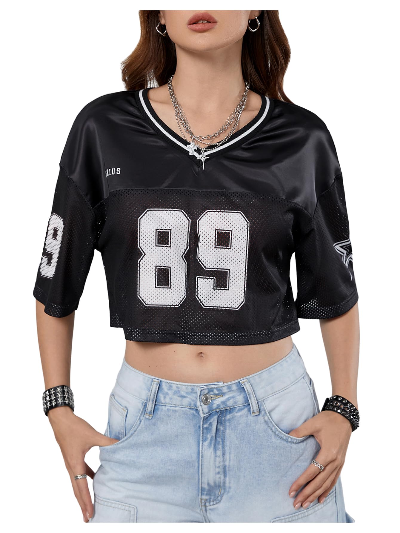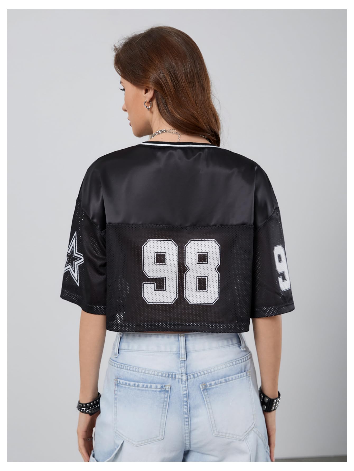 Number graphic t shirts, casual summer tops, contrast binding, y2k style, womens t shirts