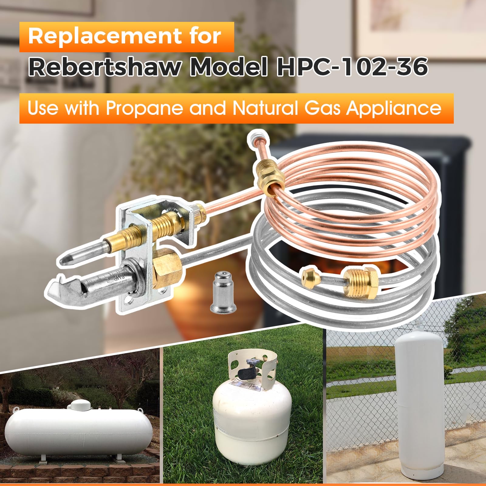 ใCOMPATIBLEใ Pilot Burner perfect compatible with Rebertshaw model HPC-102-36 fireplace and stoves. Use with propane and Natural Gas Appliance.