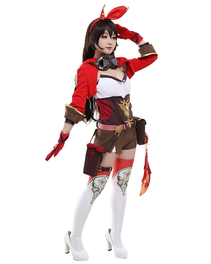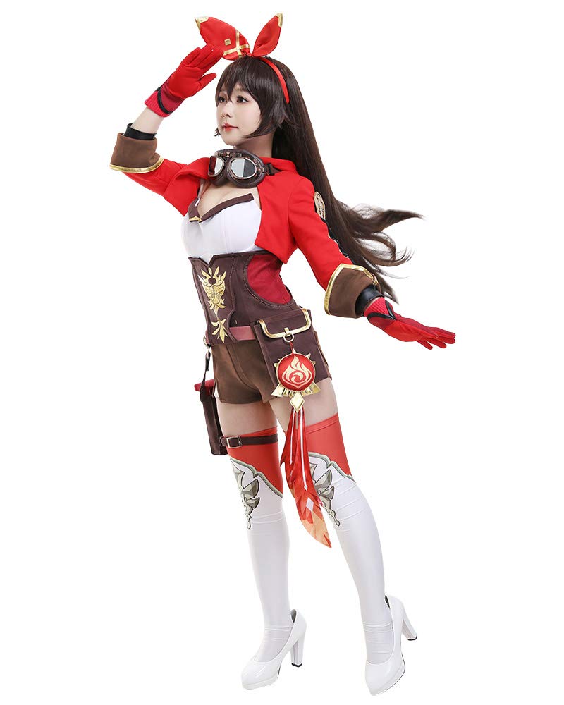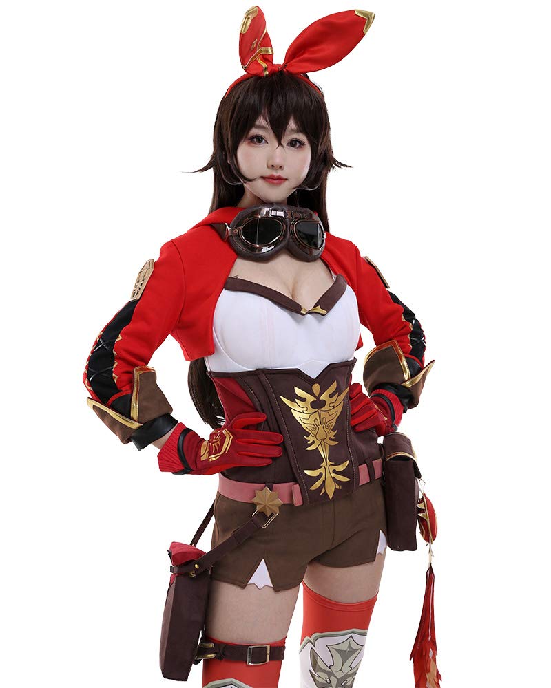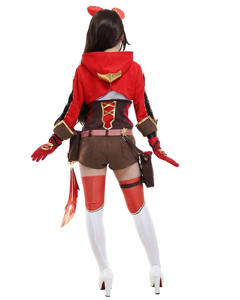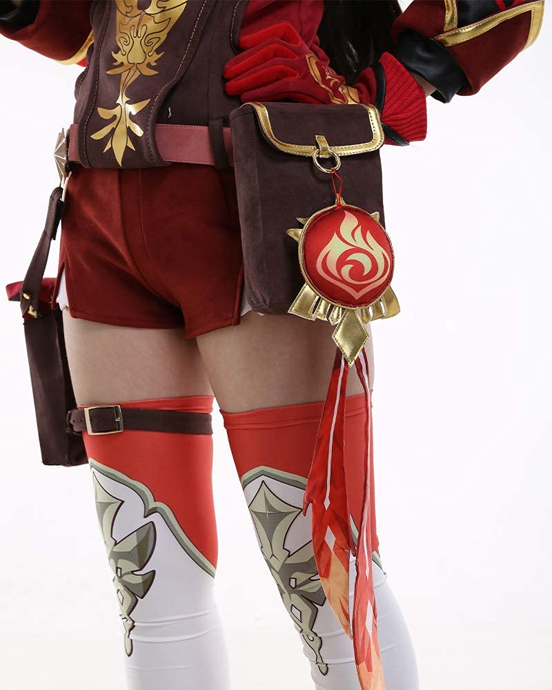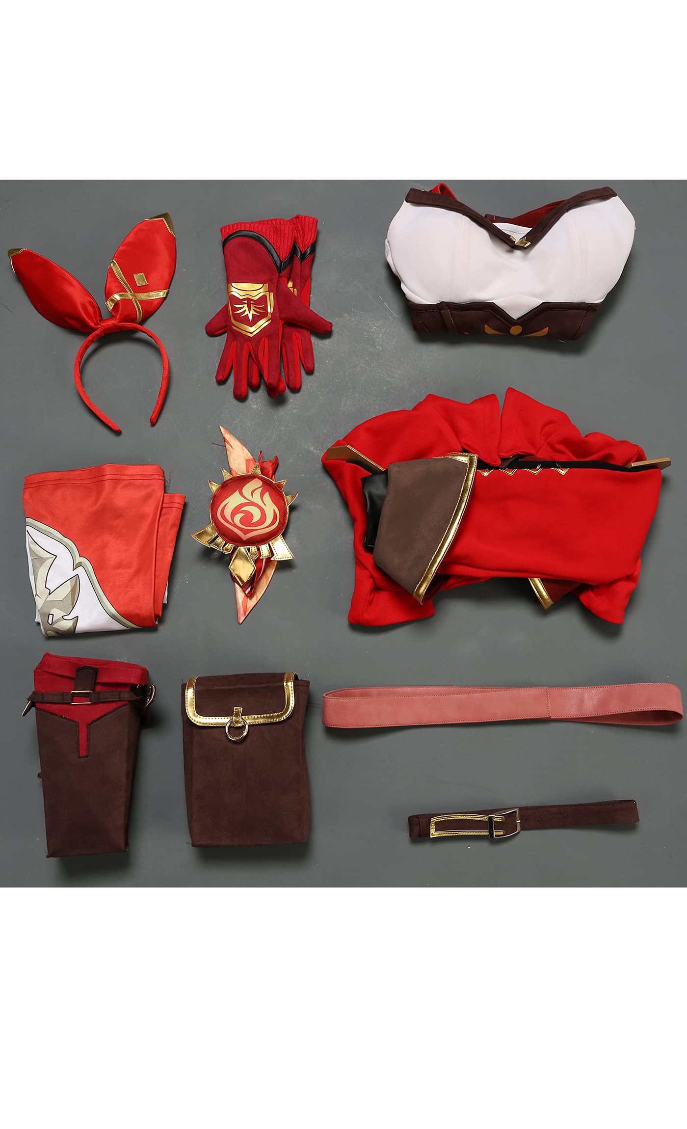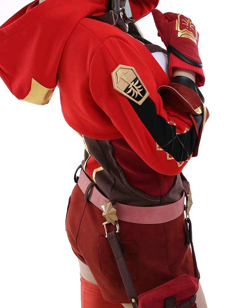 The costume comes with coat, jumper-like outfit, belt, big waist bag, small waist bag, waist accessory, hair band, gloves*2, stockings*2, leather leg ring, invisible shoulder straps*2.