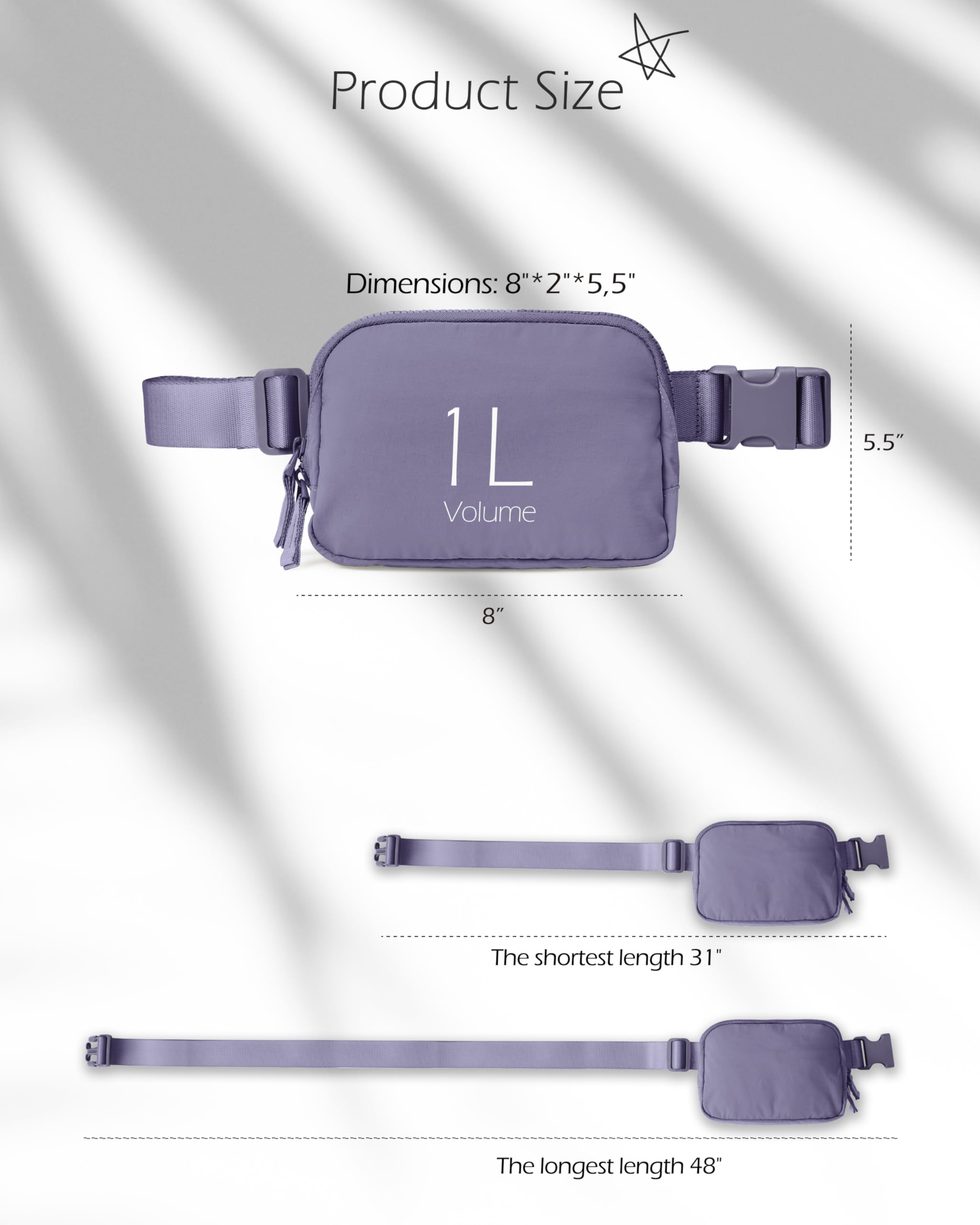 Versatile Style: Adjustable Strap allow you to wear this belt bag in a variety of ways. It can be carried as cross bag, shoulder bag, waist bag or handbag. It’s all up to you.