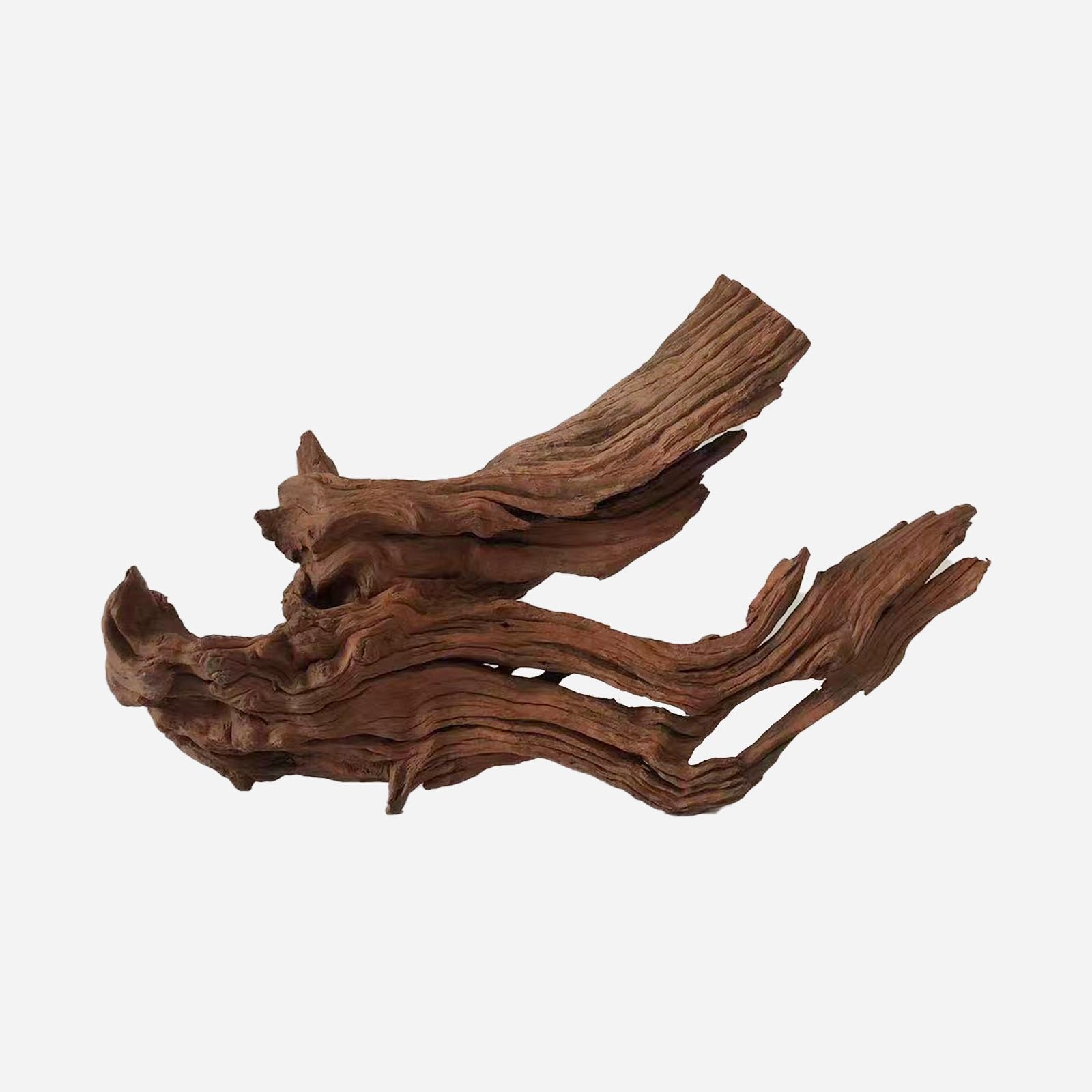 FIXED SHAPE - Purple teak wood L19.69×W8.66×H12.99 in, 6.44 lb. Shape as shown in the image (Manual measurement, please allow about 1 inch margin of error for different angles). Natural driftwood formed by nature has unique shapes and textures, making them one-of-a-kind. These driftwood pieces are carefully selected to ensure quality and aesthetics. Our driftwood has a relatively large weight and density, allowing it to sink directly into water and provide hiding place for your aquatic pets.