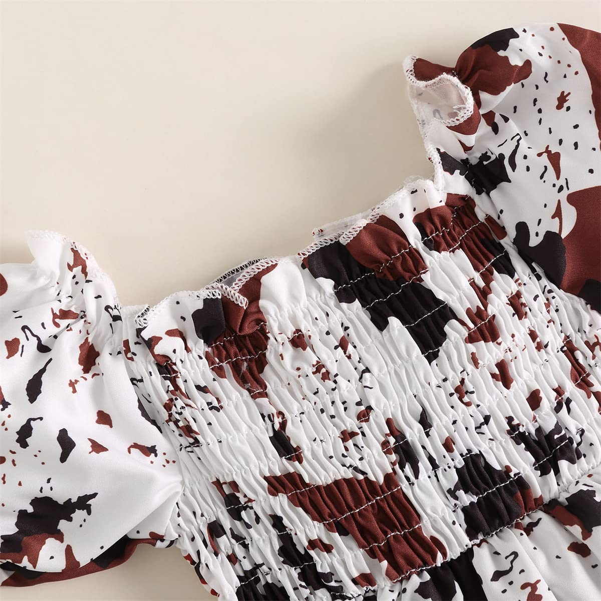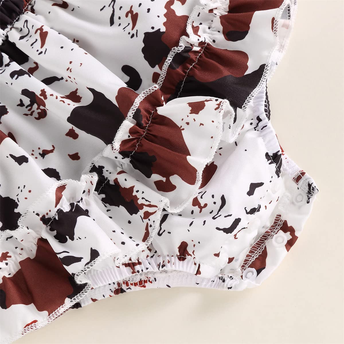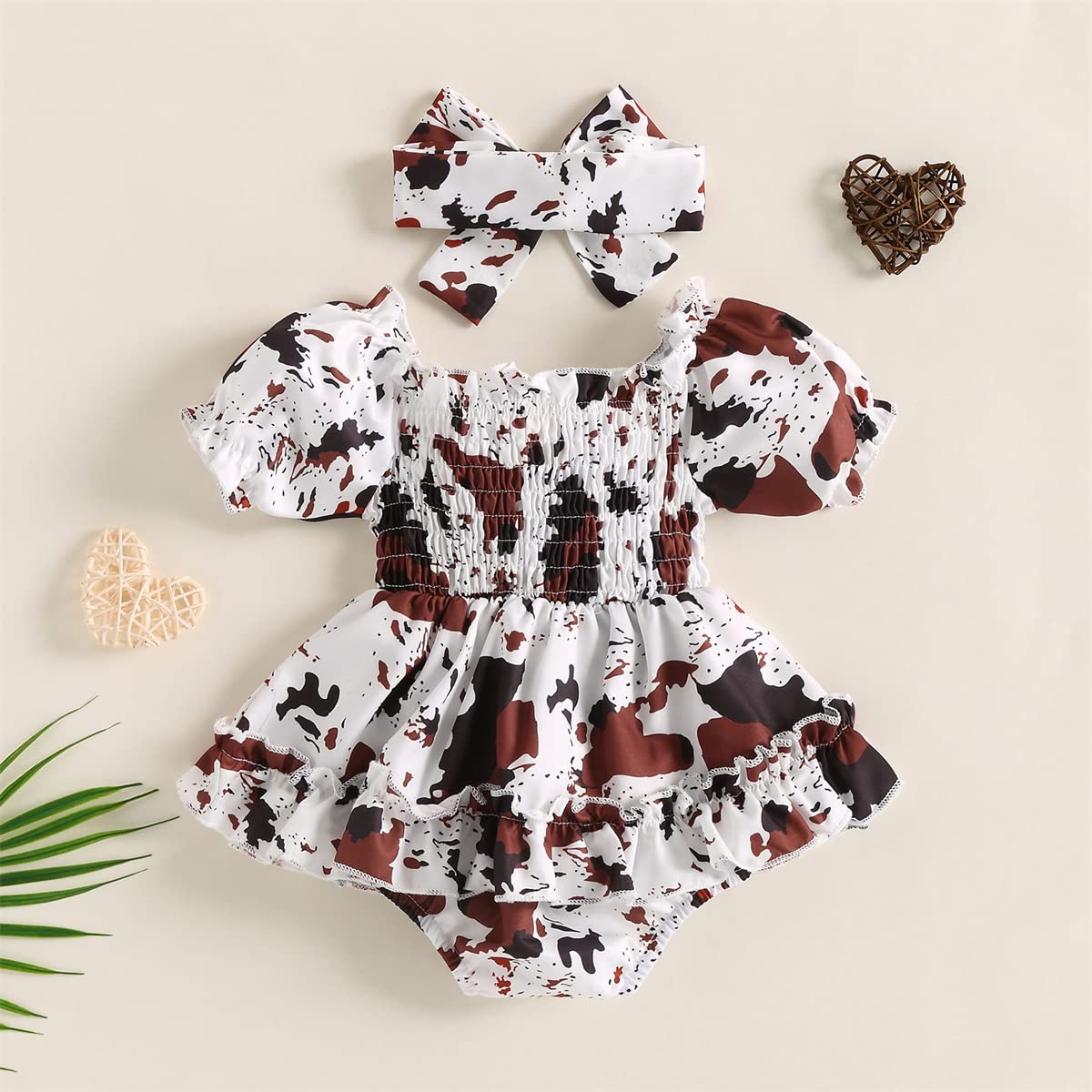 YINGISFITM Infant Baby Girl Bubble Romper Ruffled Dress Cow Print Onesie Summer Dresses Cute Clothes and Headbands (Cow Print Romper,0-6 Months)