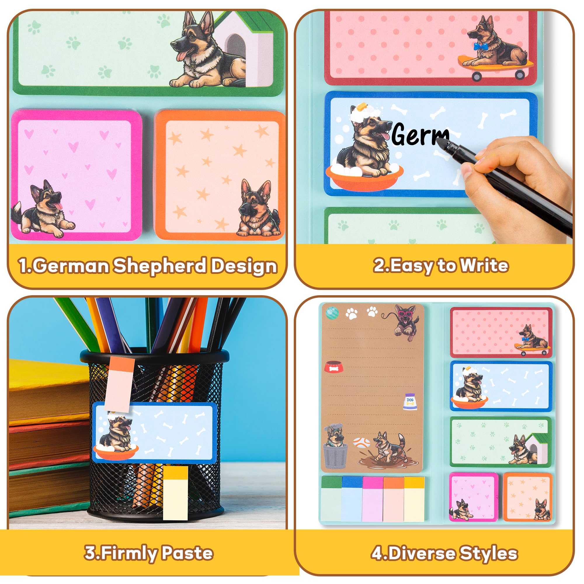 B1ykin Sticky Notes Set - Cartoon Theme Cute Self-Stick Notes Pad Teacher Appreciation Gifts, Self-Adhesive Writing Memo Pages Sticky to Do Notepad for Kids Employee School Office (German Shepherd)