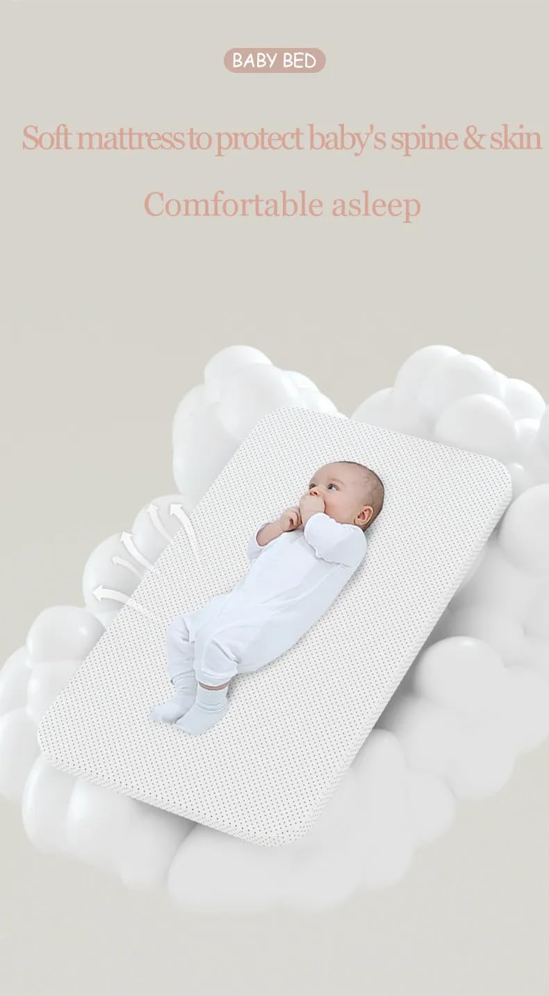 【Easy Mobility & Storage】 Smooth-rolling locking wheels of the next to me allow quiet and effortless movement without damaging floors. The large storage basket below keeps essentials—like diapers, wipes, and outfits—organized and within reach whenever you need them.
