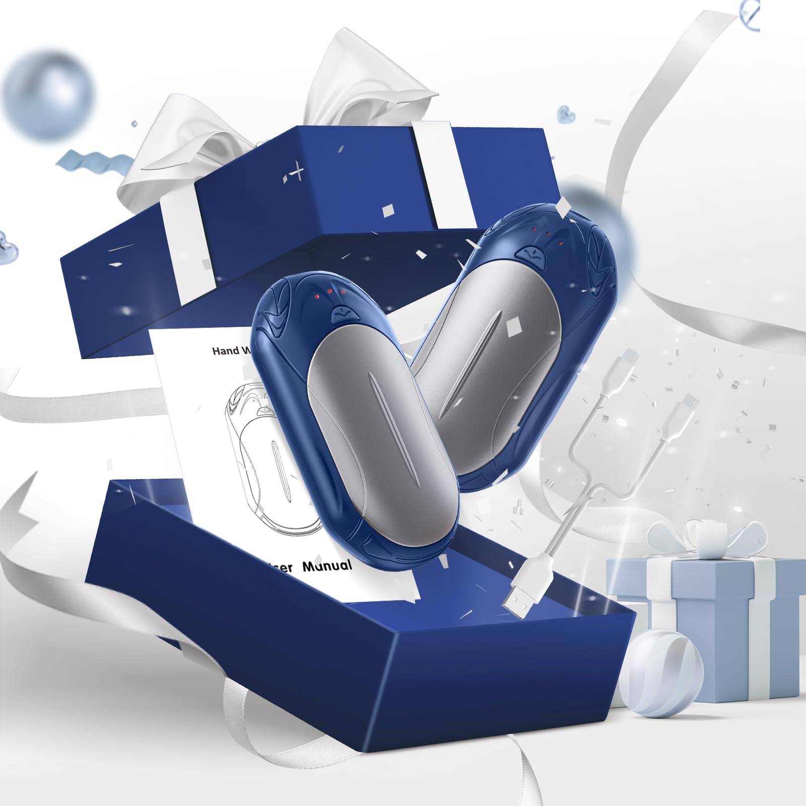 AI Hand Warmers Rechargeable 2 Pack, 6000mAh Electric Hand Warmers, AI Smart Chips 20Hrs Long Safe Heat, Portable Pocket Heater, Gifts for Christmas, Outdoor, Golf, Hunting, Camping Accessories -Blue
