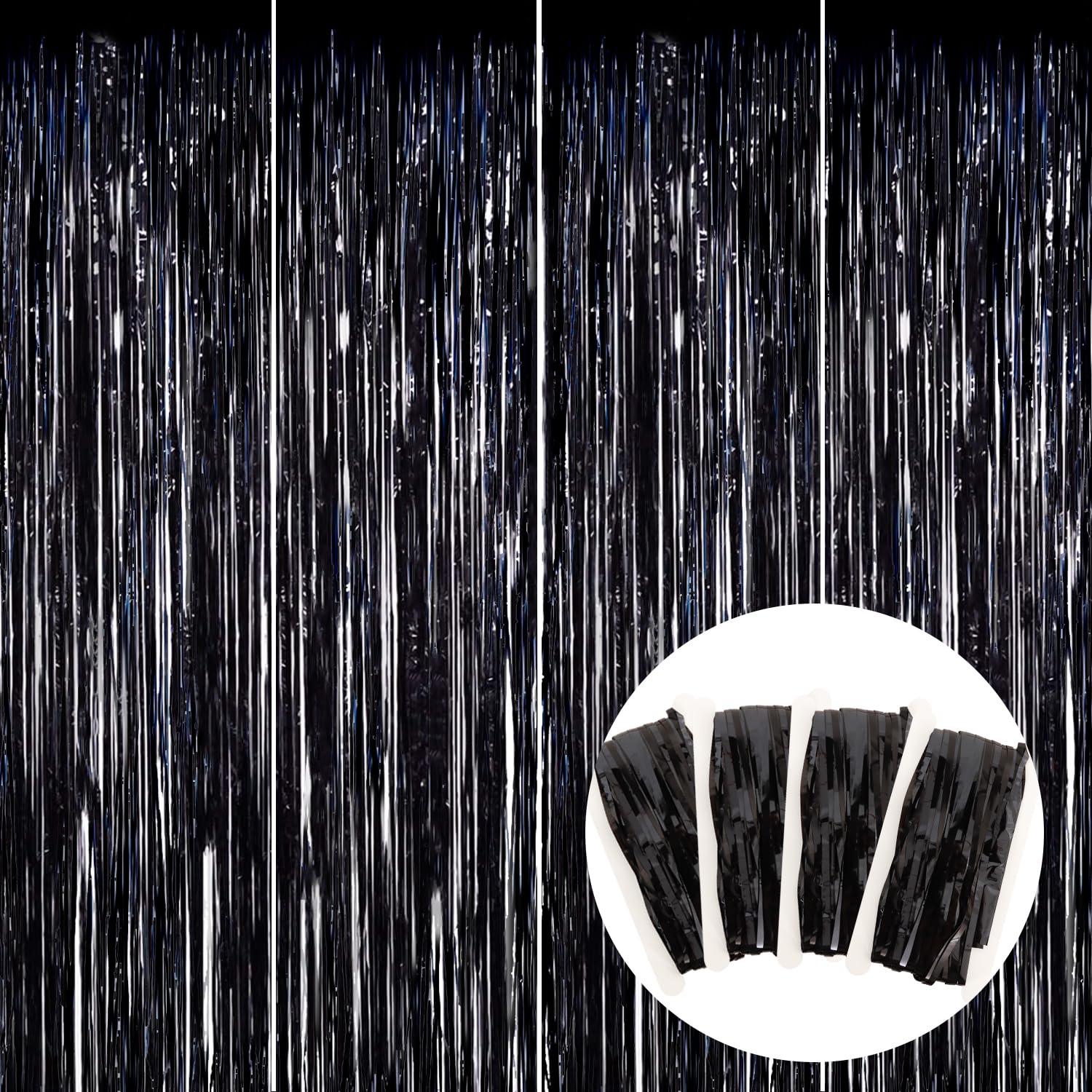 Black Party Streamers Size - The 4 pack streamers curtain size is 6.56Ft(Length) X 3.28Ft(Width). The fringe backdrops are perfect to make an elegant entrance curtain for your party decorations.