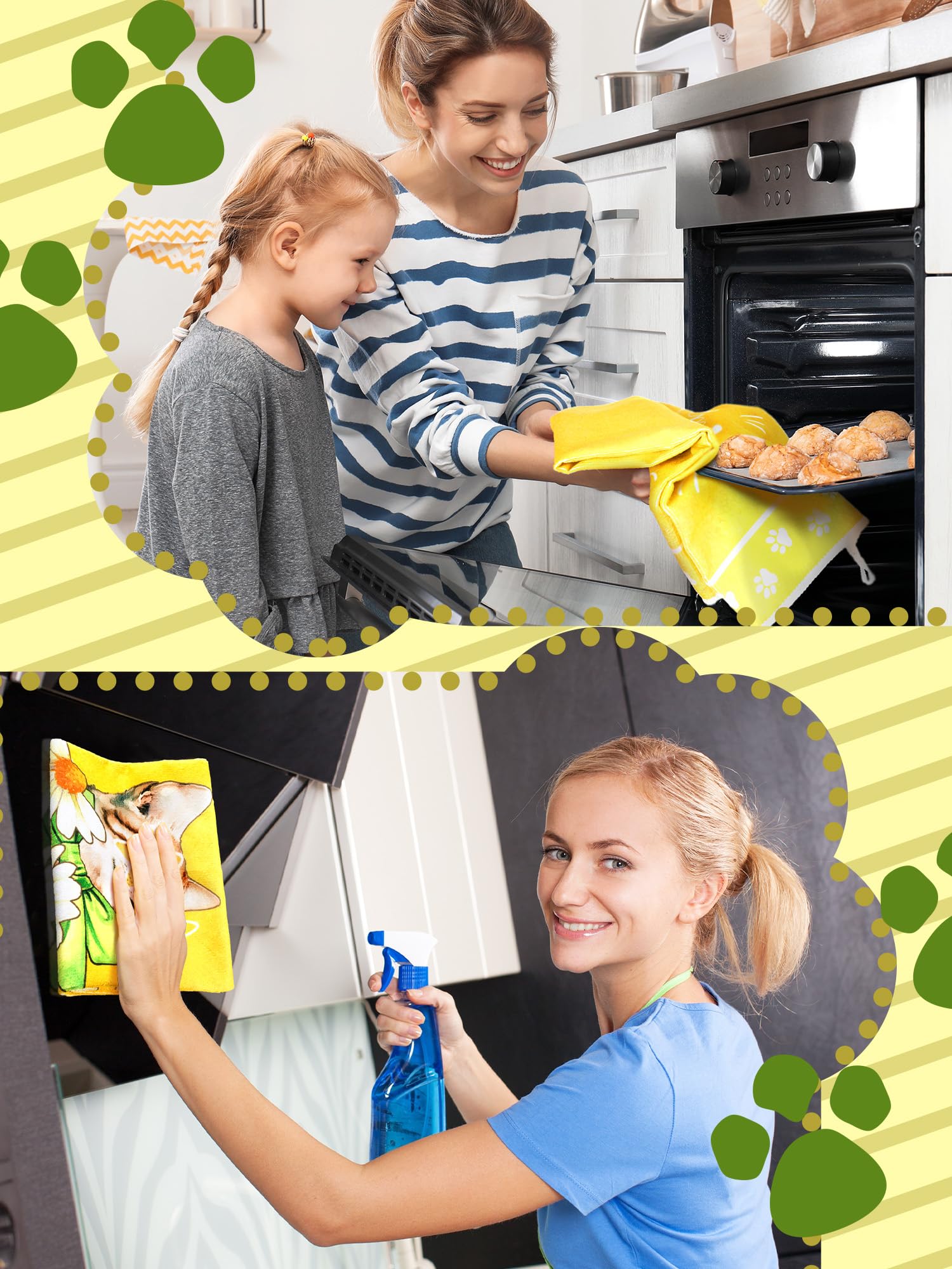 Cat Themed Design: each kitchen towel is printed with cat and flowers, cute and lovely, the main yellow and white colors create a fresh and comfortable seasonal atmosphere, adding bright color to your home and kitchen
