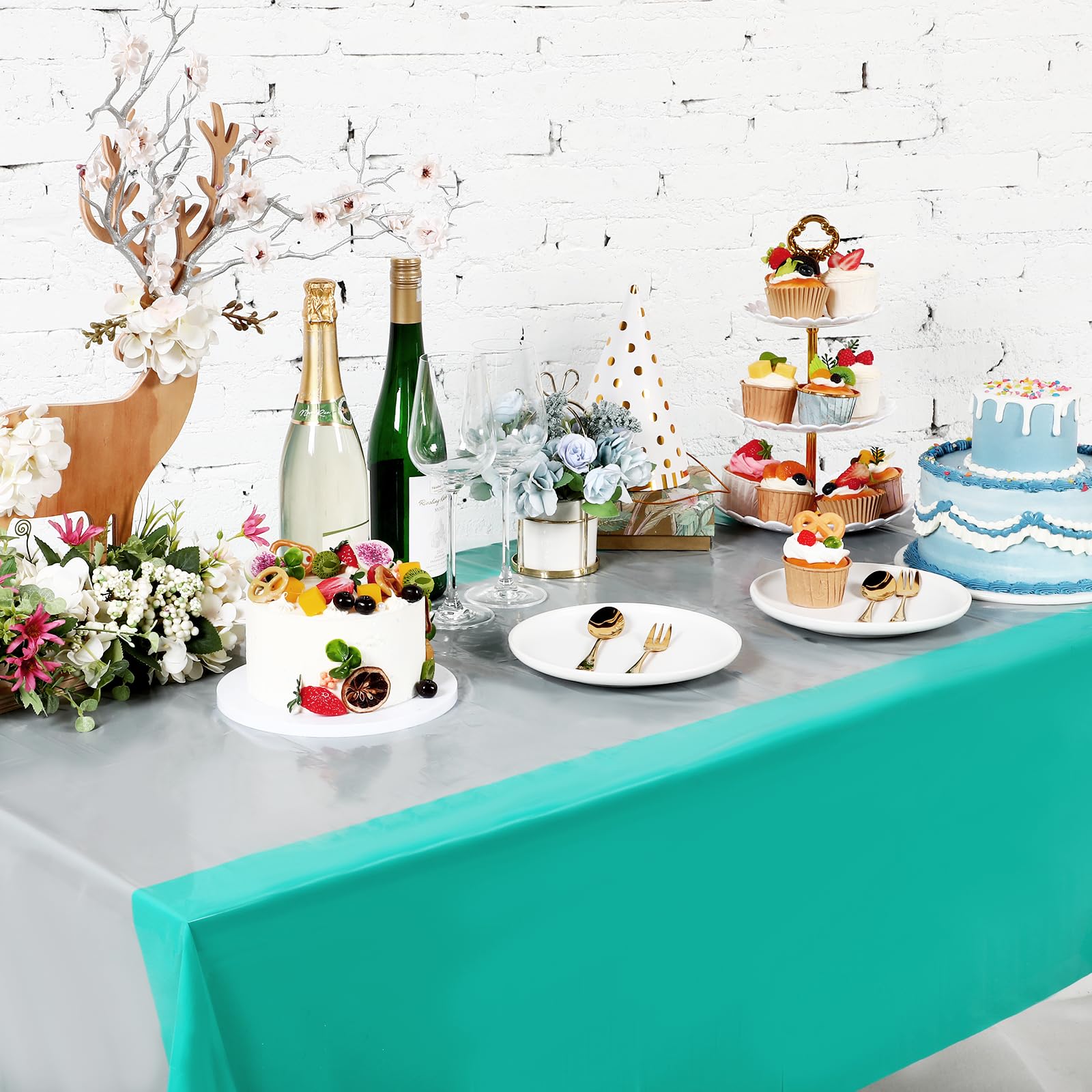 Elegant Design: the teal and silver design of these plastic table cloth disposable adds elegance to any dining experience, you can use them directly or cut them to decorate your wedding table or desk according to your needs and preferences; Your guests will be impressed with the sophisticated atmosphere they create