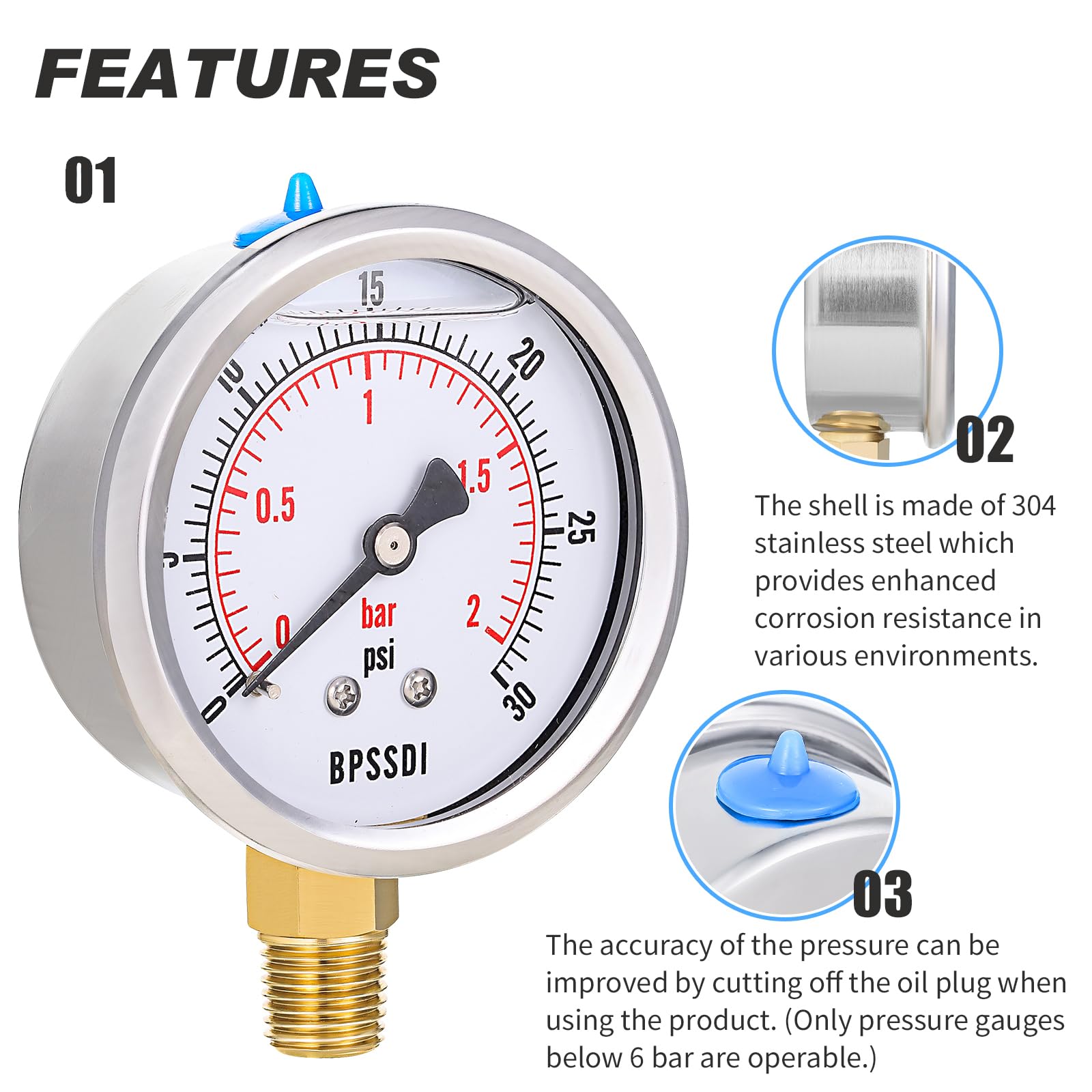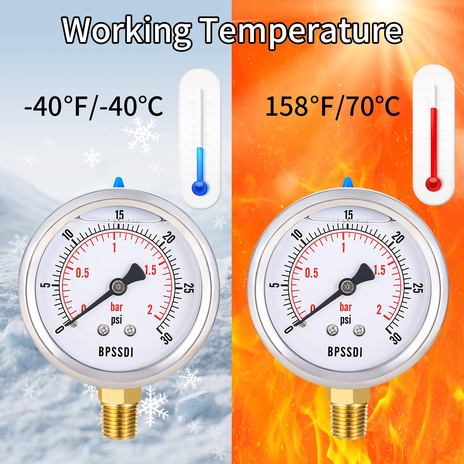 Weather and Temperature Resistant - The pressure gauge can be used in environments from -40°C to 70°C in a variety of climates.