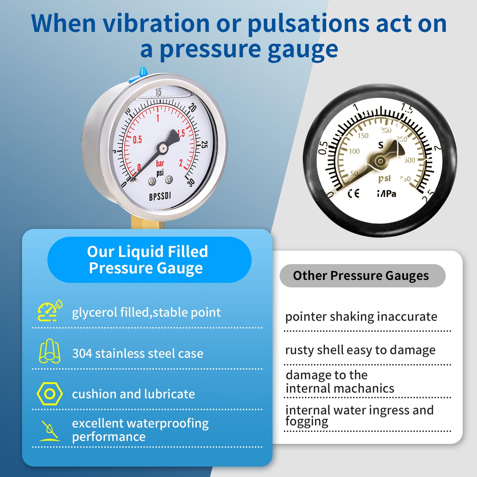 Glycerin Filled - Inhibits pointer flutter and prevents damage to the internal mechanics from vibration and pulsation.