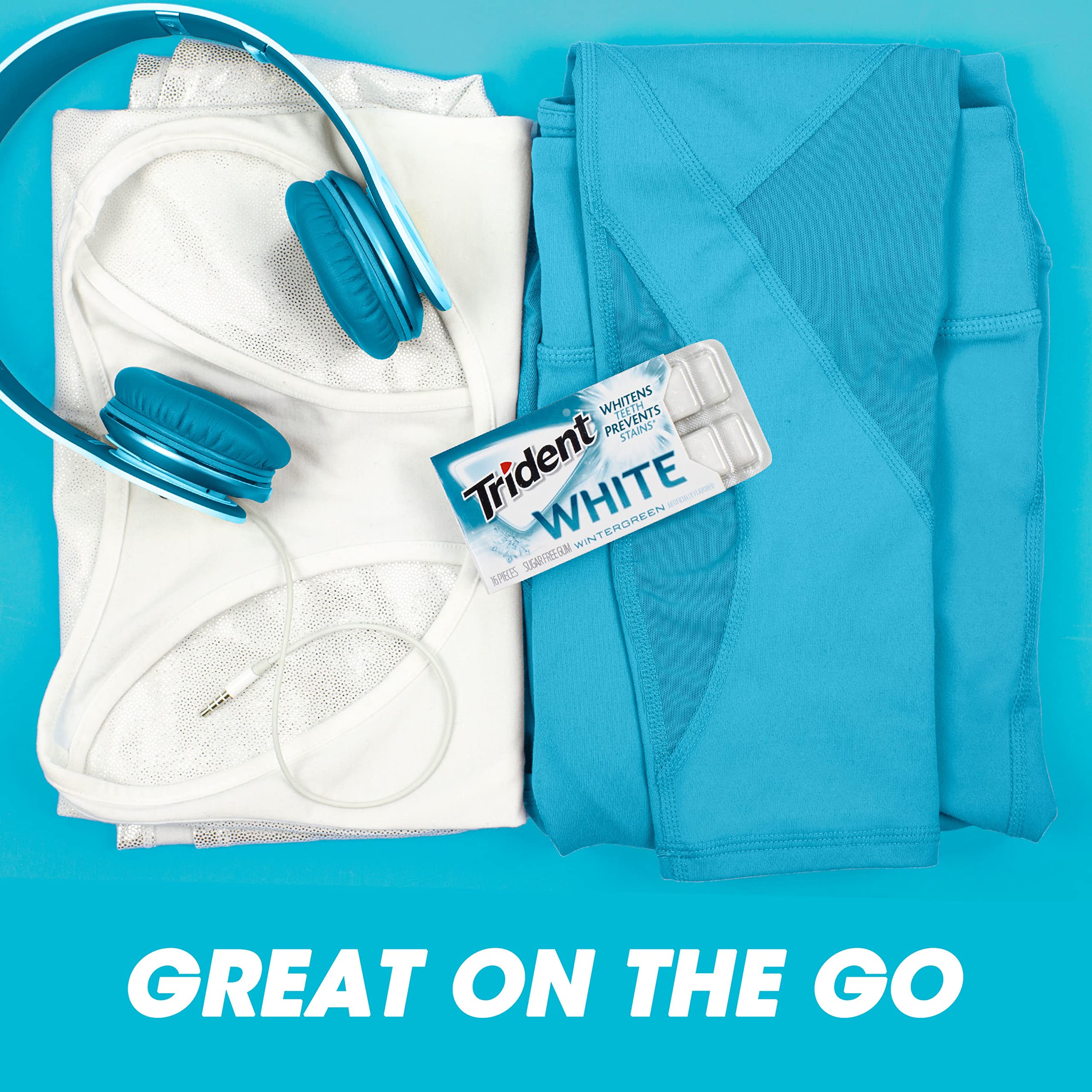 Trident White Wintergreen Sugar Free Gum is sugar free wintergreen gum that whitens teeth, prevents stains and gives you extra fresh breath. This delicious wintergreen gum brings sparkle to your smile by whitening teeth and preventing stains. Each piece of minty teeth whitening gum is easy to pop in your mouth, and Trident White gum contains 35% fewer calories than sugared gum. Chewing two pieces of this Trident White sugarless gum at least four times per day after meals helps remove and prevent stains. Bulk gum packs of mint sugar free gum are perfect for stocking your office or home pantry. Individual packs of gum are easy to take on the go, whether you're setting off across the country or running errands around town.