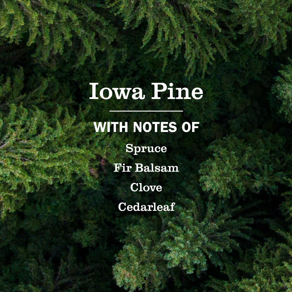 GARDEN-INSPIRED SCENTS: Festive Iowa Pine, with a touch of clove and cedar, has a scent as wonderful as a freshly cut tree. What could possibly be merrier? With scent notes of: spruce, fir balsam, clove, and cedarleaf
