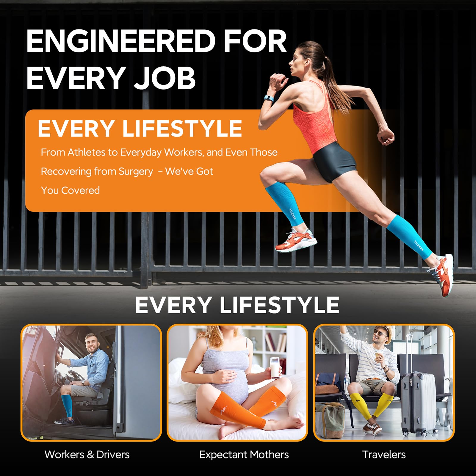 【SUIT YOUR ACTIVITIES】The compression leg sleeves are perfect for running, hiking, martial arts, volleyball, basketball, cycling, baseball, yoga, workouts, fitness activities. They're also an ideal choice for the elderly, pregnancy, or jobs that require long hours on your feet, like nursing, retail, construction, air travel, or driving. Bonus: they even cover tattoos!