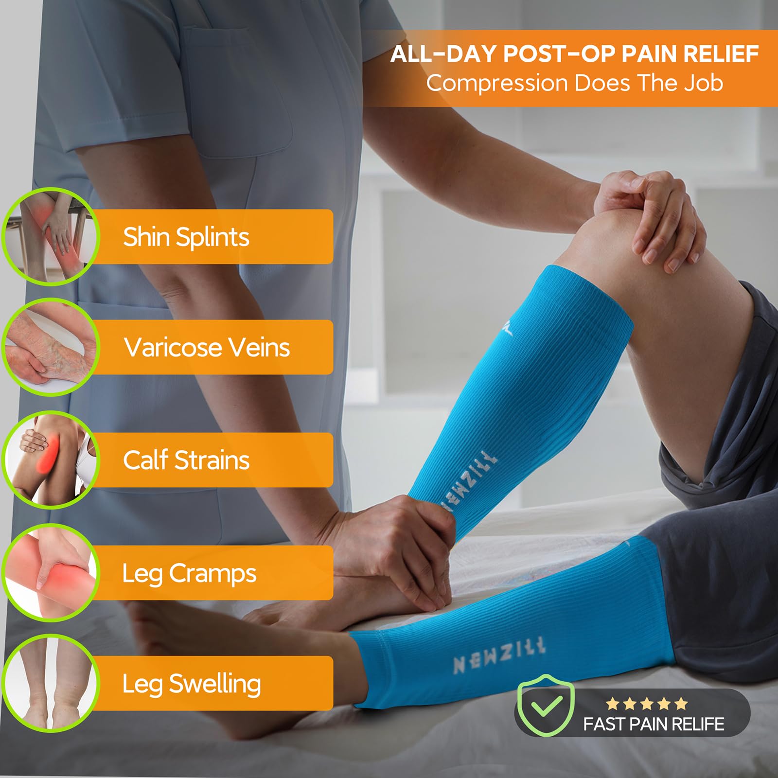 【SUPPORT YOUR LEGS】NEWZILL leg sleeves provide targeted support and stretch where needed. Whether you're dealing with Aching Calves, Leg Cramps, Restless Legs, Shin Splints, Swollen Feet, Swollen Legs, Edema, Varicose Veins, Pregnancy, Thrombosis, POTS. You'll notice the improvement and wonder why you didn't find them sooner! Try them today—train harder, and feel stronger!