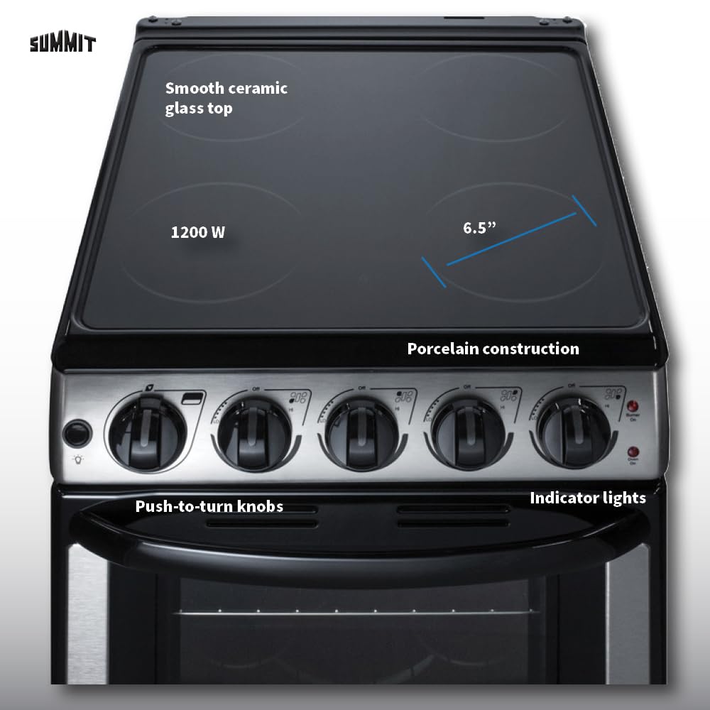 All the features to make your favorite meals: Smooth ceramic glass surface includes four 1200W 6 1/2" elements, with a hot surface indicator light for added safety. Inside, the 2.3 cu.ft. oven is made from durable porcelain enamel and the waist-high broiler function is easy to use. Includes slide-out oven racks that can be adjusted for the best fit. Includes a two-piece porcelain broiler tray with a grill cover.