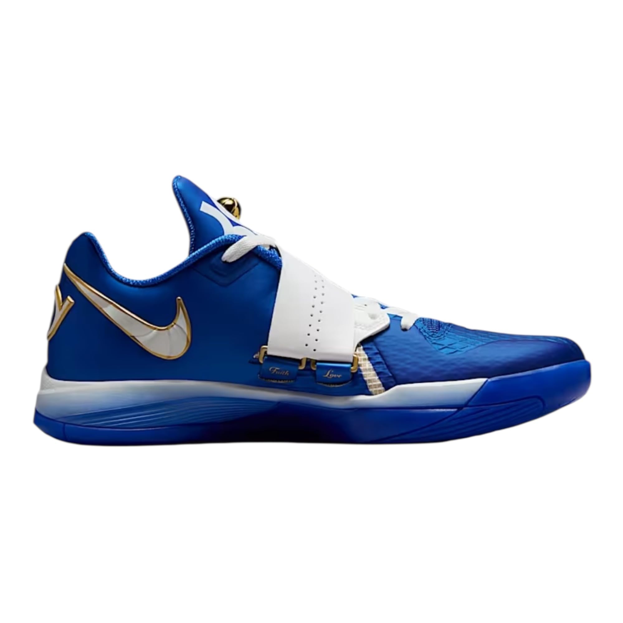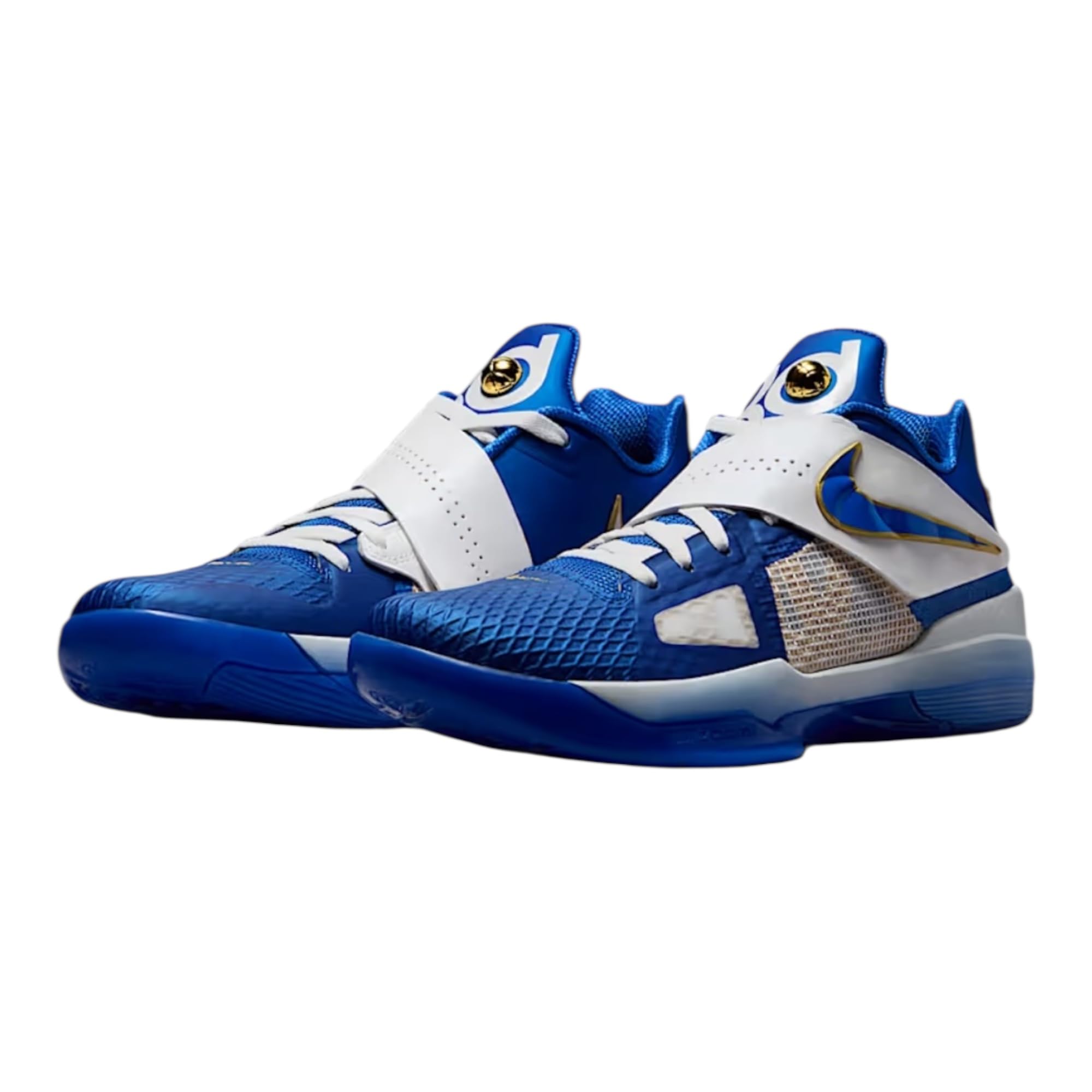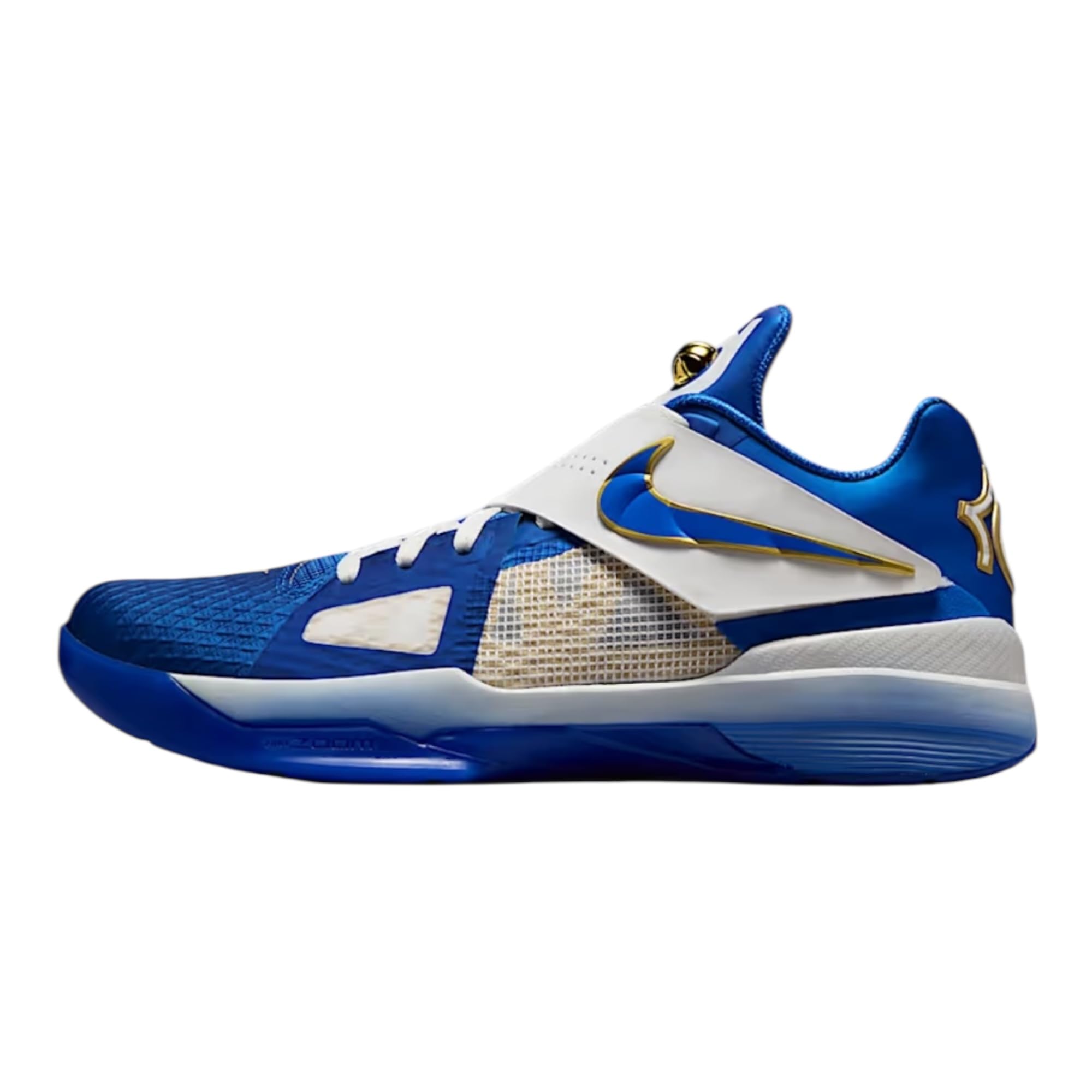 Description Reviving 90's nostalgia, this special-edition KD 4 returns to shake up bedroom hoops and rattle doorframes. From splattered straps to spray-painted tongue emblems, it's the 2011 collab that stormed both sneaker and basketball worlds. Court-ready with adjustable straps and a grippy gum sole for quick cuts, it also boasts a responsive forefoot Air Zoom unit for explosive first steps and full-court sprints.