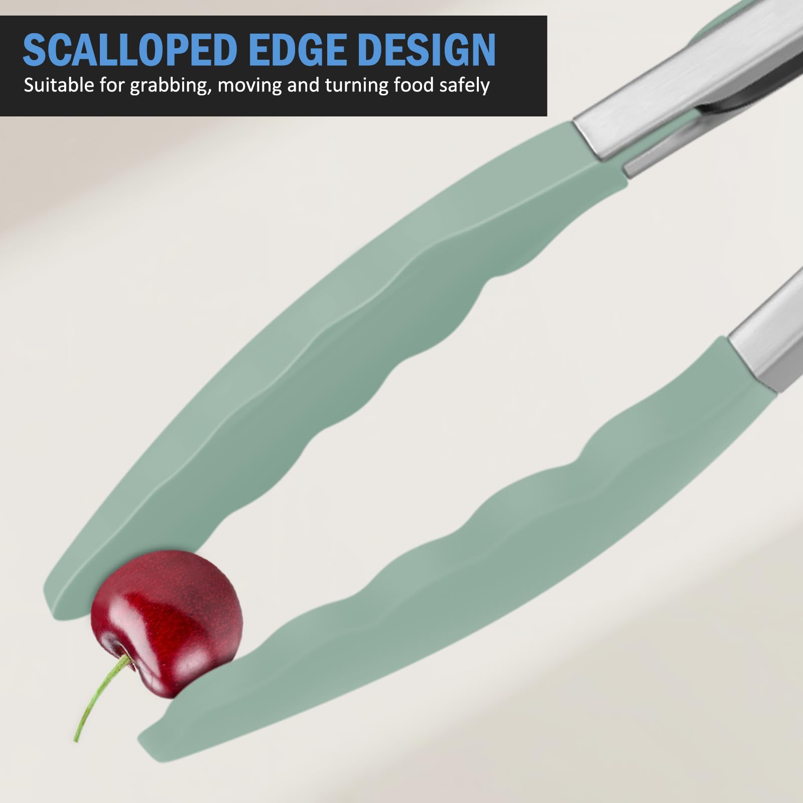 600ºF High Heat-Resistant: The silicone tongs feature BPA free silicone tip that will not scratch your nonstick cookware. Scalloped edges securely hold food. EEKEDO Tongs are great for frying, grilling, stirring, and serving. Non-stick surface easy to rinse, dishwasher safe.