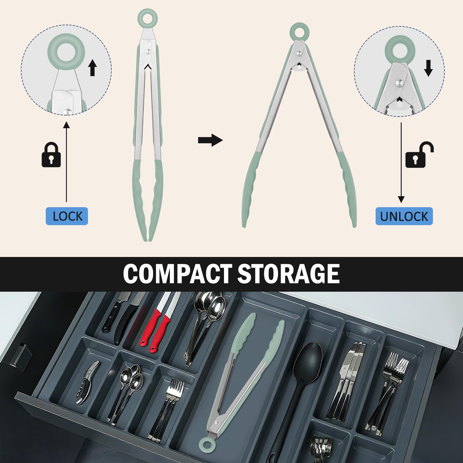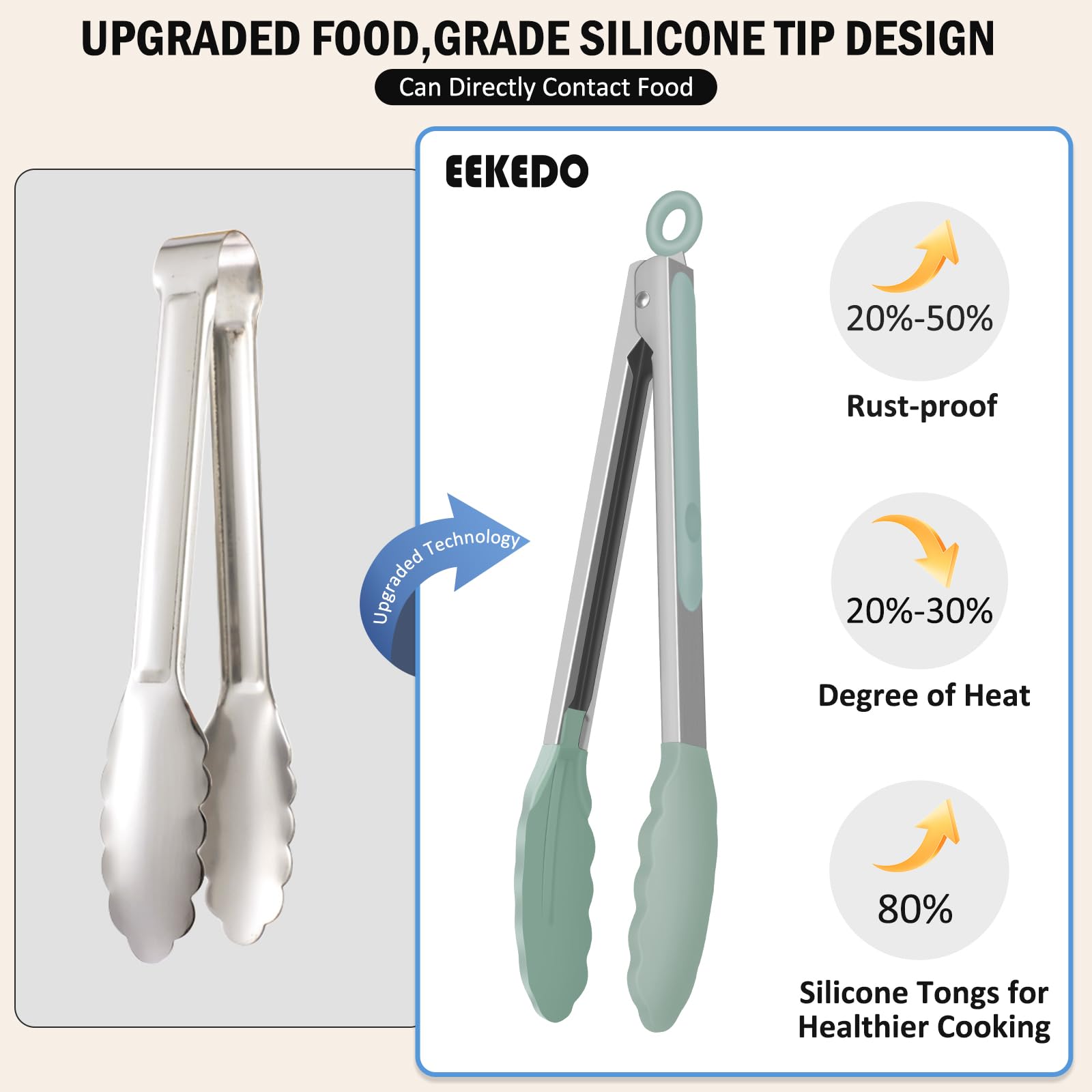 Premium Materials: EEKEDO kitchen tongs are constructed with food-grade stainless steel and silicone. Carbon free.Thickened stainless steel makes it stronger and more durable.It is convenient and safe to your cooking.