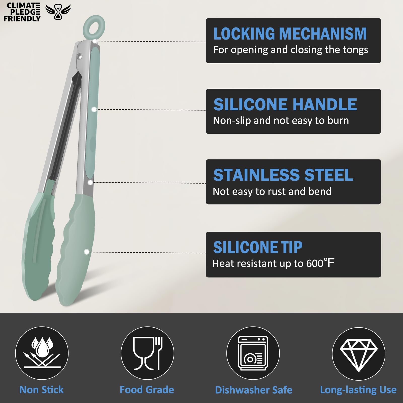 Essential Kitchen Tools: This tongs for cooking comes with 3 sizes, 7 inch, 9 inch and 12 inch. Perfect for your different kitchen tasks, indoor or outdoor use, grilling, flipping burgers/fish, cutting roast meat, pick up noodles and eggs, or used as BBQ turner or salad serving and much more.
