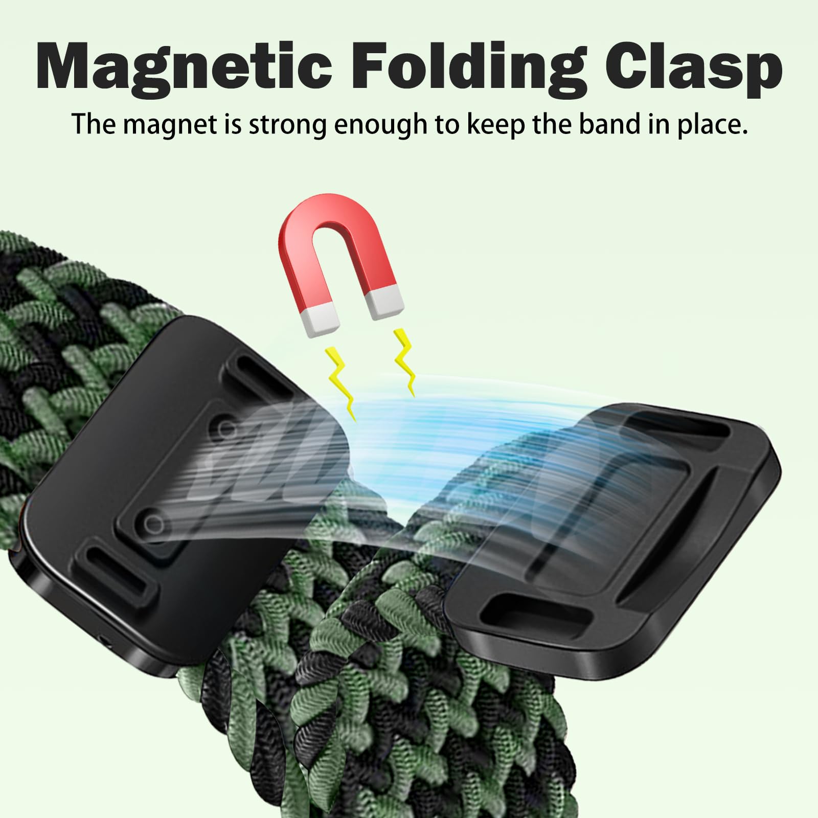 【Magnetic Clasp】This strap is equipped with a magnetic metal Clasp, which is more stable and durable, and very convenient for you to put on or take off your smart watch. The magnetic Clasp is movable. You can easily adjust the size to fit your wrist. Don't worry if you accidentally drop the watch when exercising, the magnet is strong enough to keep the band in place.