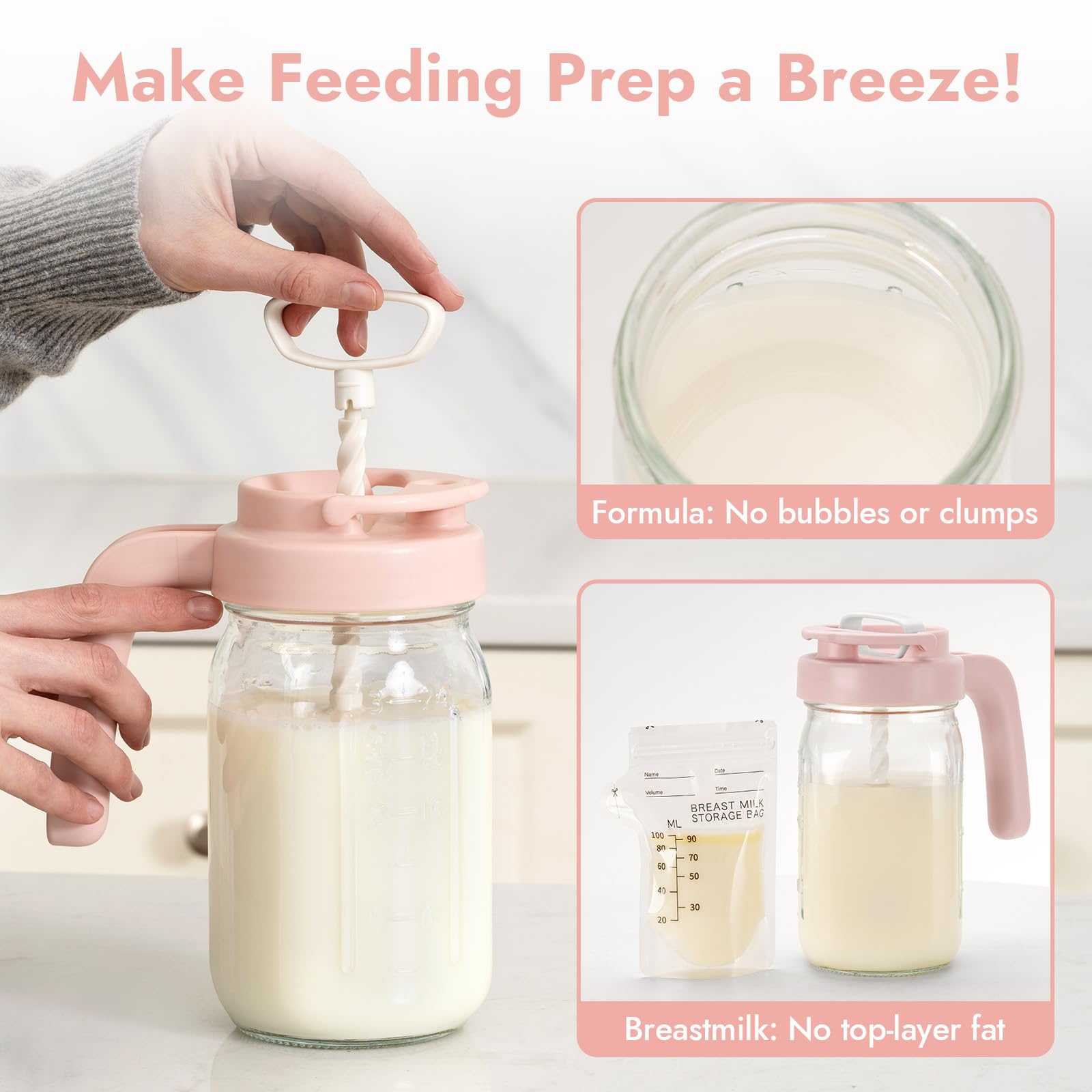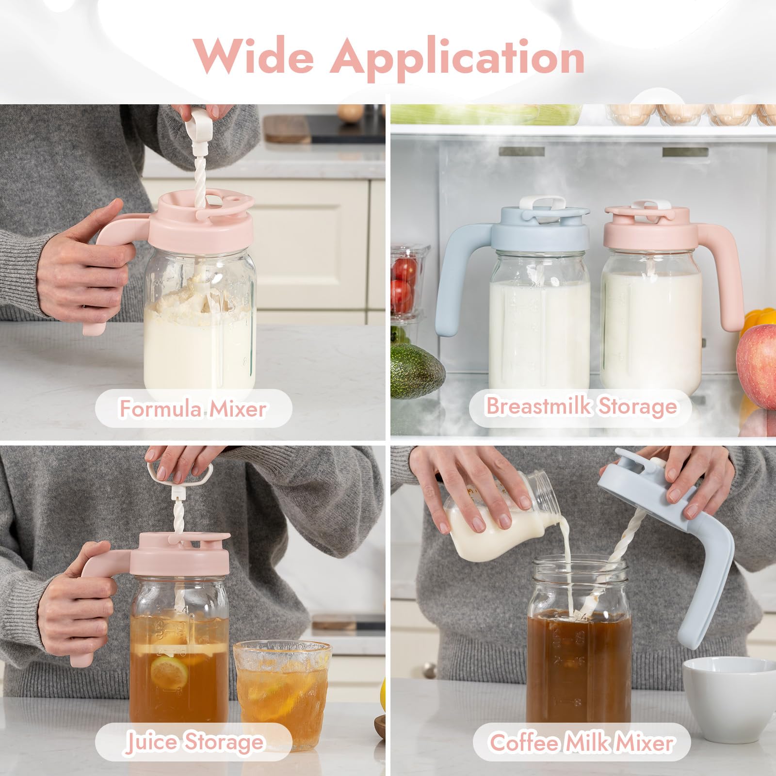 𝐌𝐮𝐥𝐭𝐢-𝐏𝐮𝐫𝐩𝐨𝐬𝐞 𝐌𝐢𝐱𝐢𝐧𝐠 𝐏𝐫𝐨: Transform Mason jars into a formula mixer/smoothie blender/coffee shaker with our revolutionary stirring lid (*Only match 32oz wide mouth mason jar lids, not included in the package)