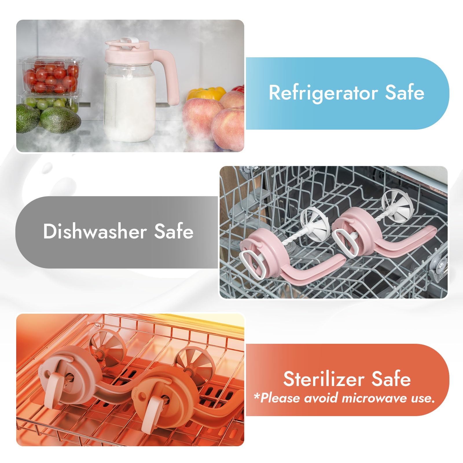 𝐄𝐟𝐟𝐨𝐫𝐭𝐥𝐞𝐬𝐬 𝐂𝐥𝐞𝐚𝐧𝐢𝐧𝐠: Fully disassemblable design. All parts are dishwasher safe. No hidden crevices for milk residue