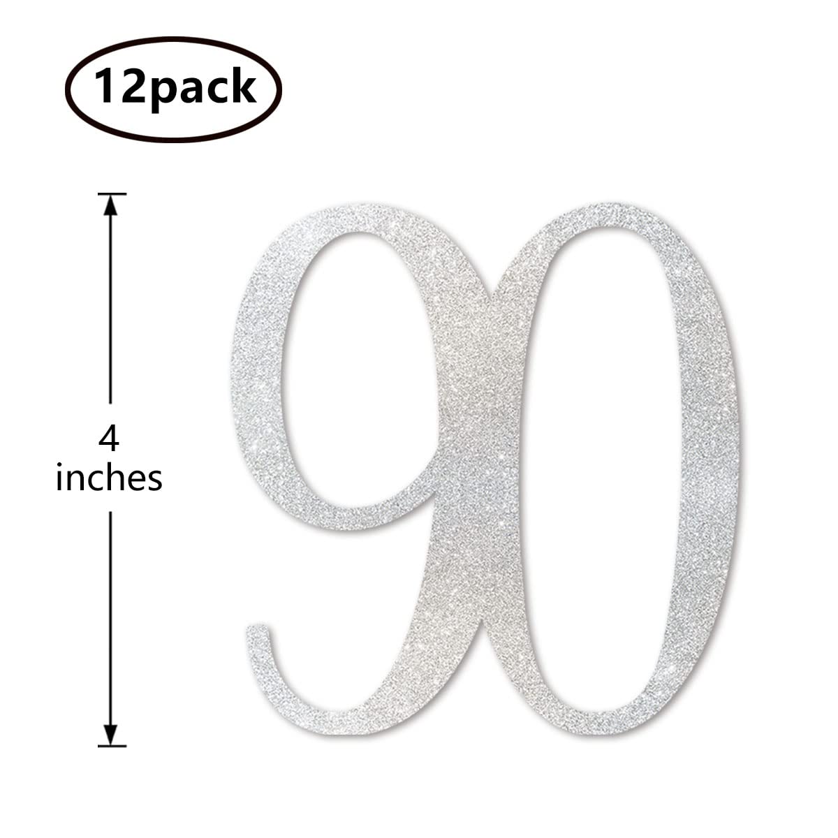 Silver Glitter 90th Birthday Centerpiece Sticks, 12-Pack Number 90 Table Topper Anniversary Party Decorations
