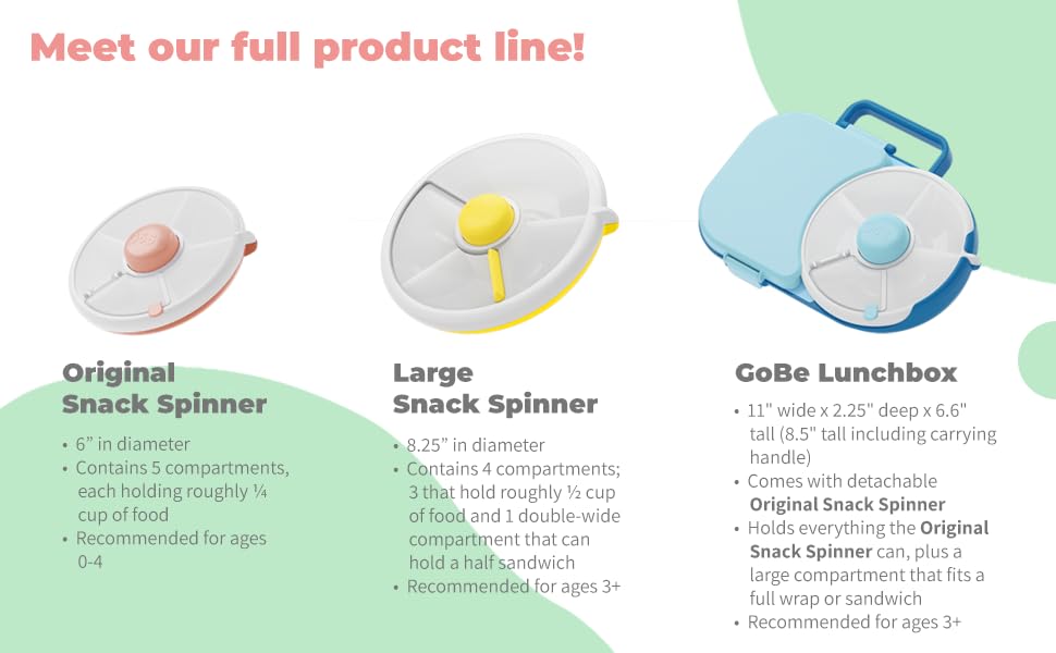 SNACK. SPIN. REPEAT - Make snacking a breeze with 5 snacking compartments with interactive button. Combine your snack bowls and cups into one light-weight, easy to use container!