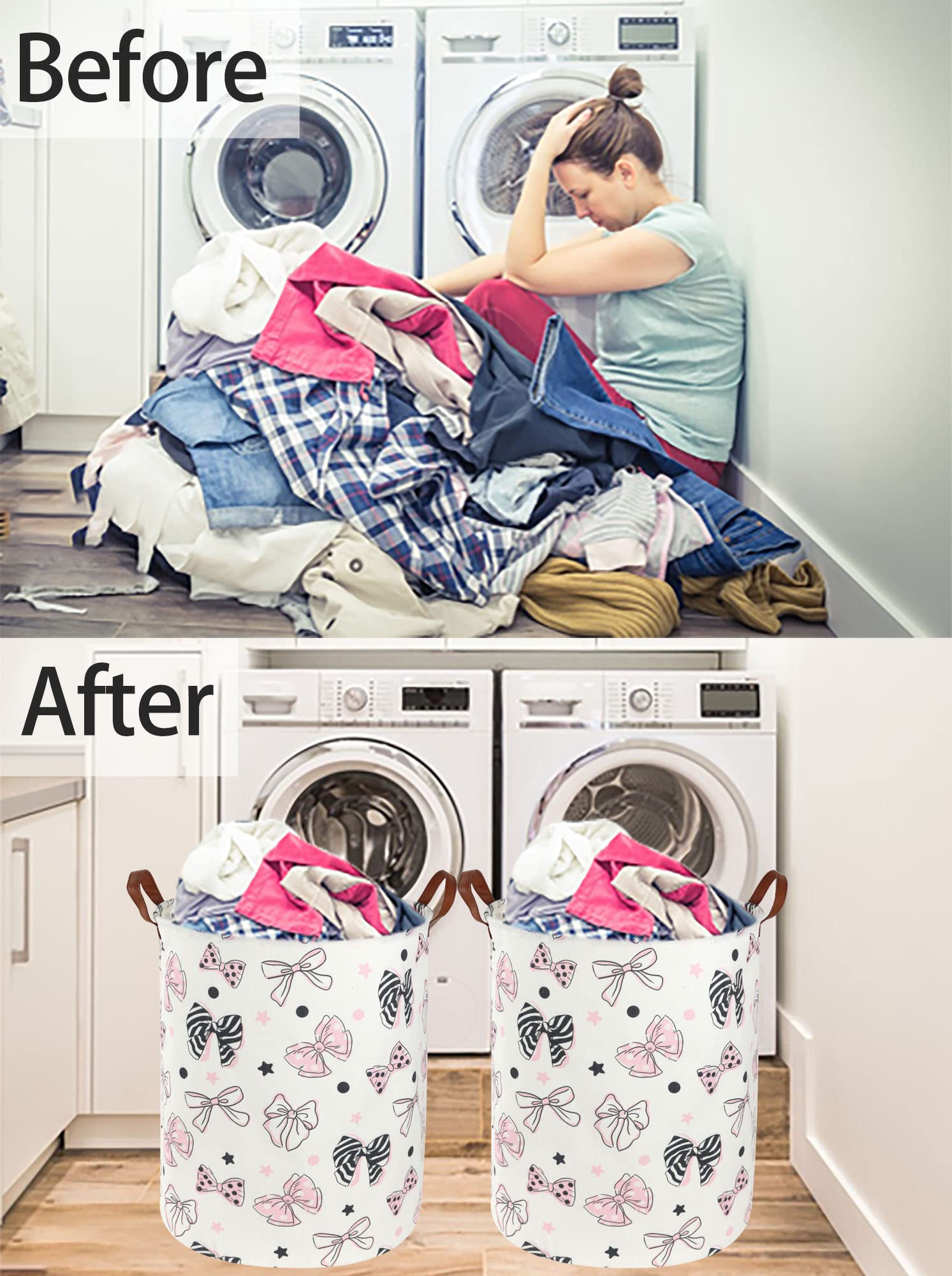 Note: Girls Laundry Hamper comes with compression packing which may result in crumpled in long-distance transit. It will recover after a period of time and also can be smoothed out by steam iron and hairdryer.