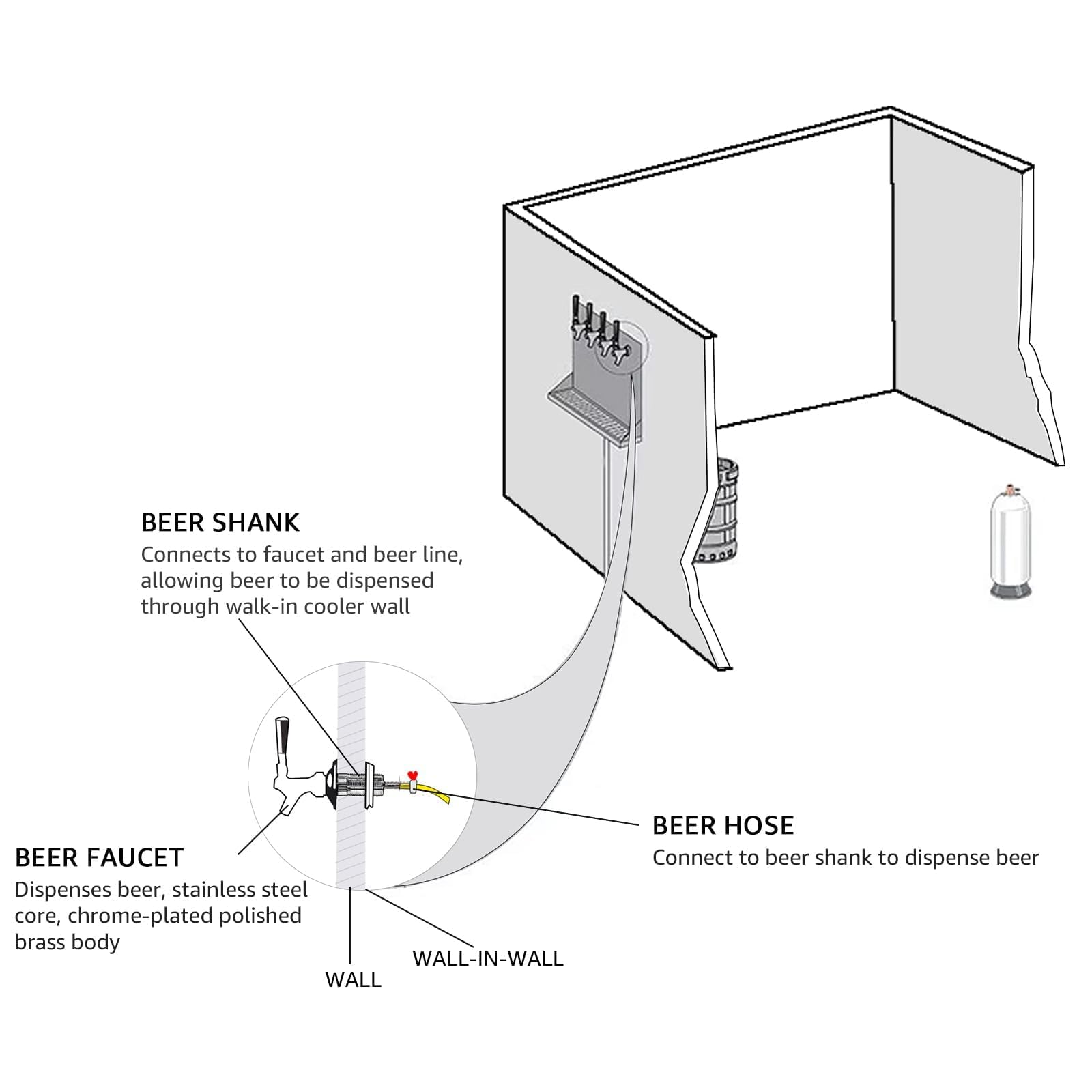 Widely Application: Dbgogo self-closing spring shank beer faucet can go through refrigerator wall, freezer wall, cabinet wall, beer tower wall, jockey box wall to be attached to beer or beverage line on the other side of the wall. This beer tap faucet is an ideal choice for dispensing soda, beer and varieties of carbonated drinks at your bar, hotel, restaurant and home brewing kegerator system!