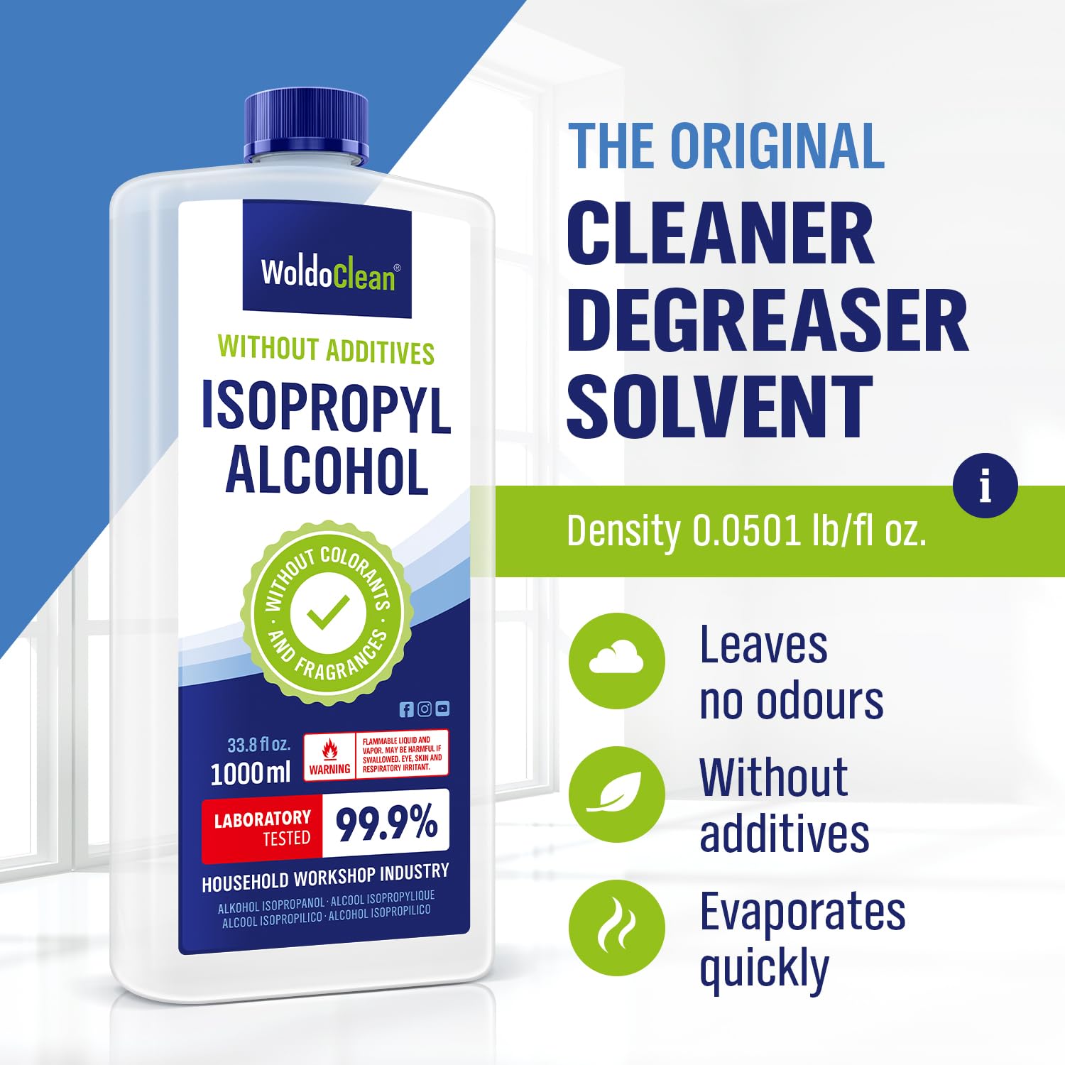 Isopropyl Alcohol High-purity IPA (2-propanol), free from colorants & fragrances. Fast-evaporating, residue-free rubbing alcohol for cleaning, disinfecting & first-aid use.