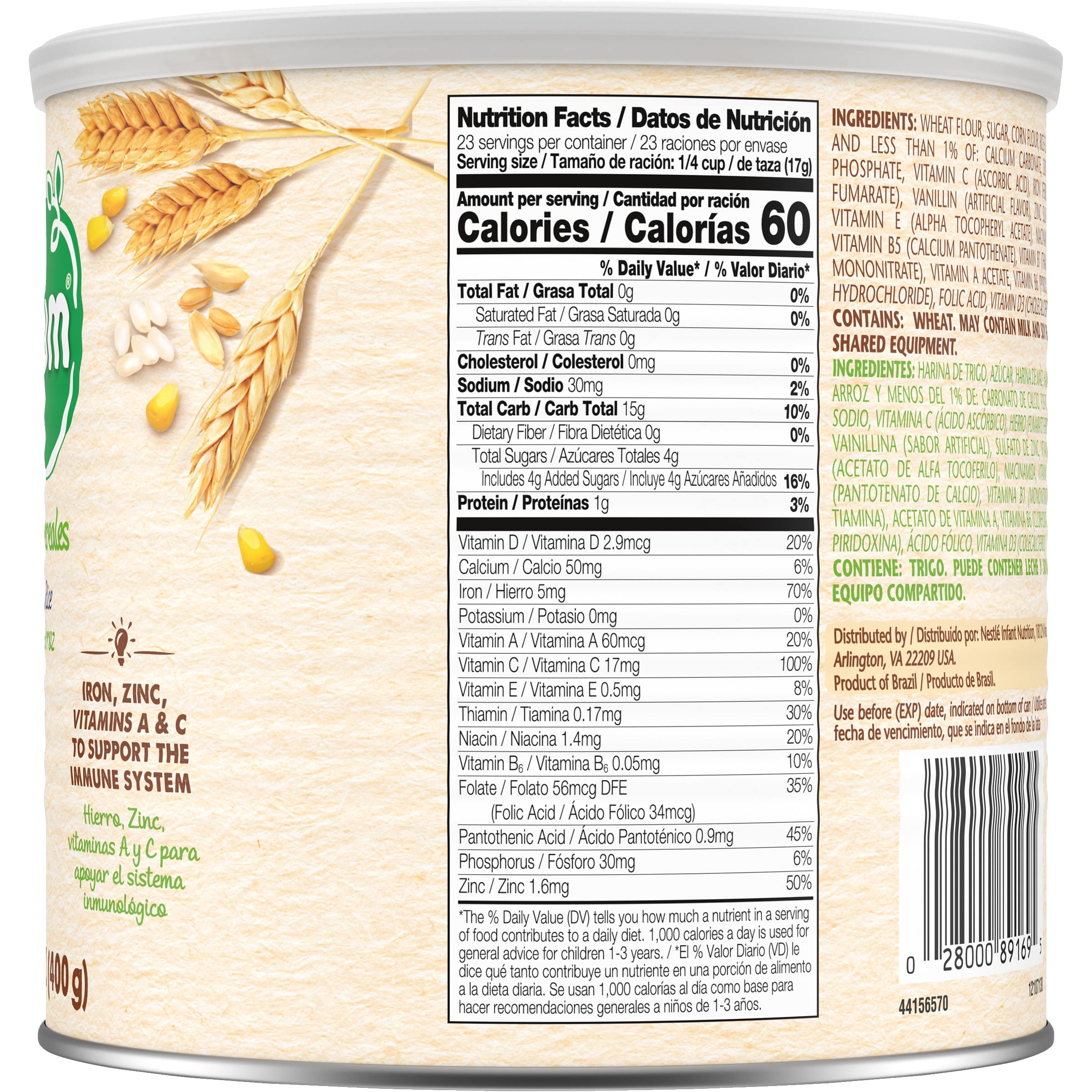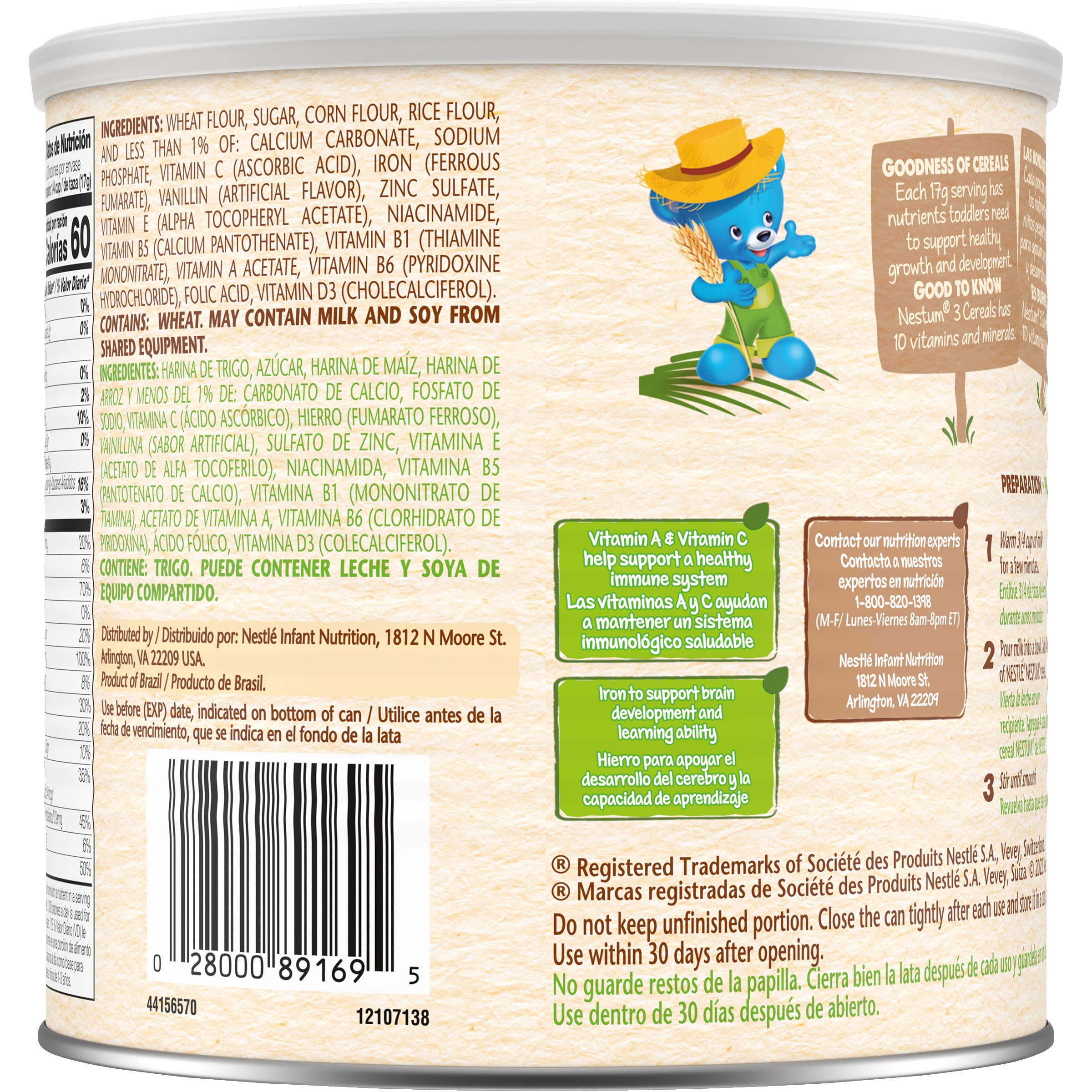 Nestle Nestum Junior Cereal, 3 Cereals - Wheat, Corn & Rice, 14.1 Ounce Canister: Crafted with delicious ingredients to help your little one blossom. Nestum is made with wholesome grains and vitamins and minerals to support healthy growth, including iron to help support brain development and learning ability. Our cereals are made with wholesome ingredients. Also, they are easy to prepare for a satisfying cereal for your little one. With a range of cereals made for little ones from 6-12+ months, there’s a Nestum product to help nourish little tummies of all ages.