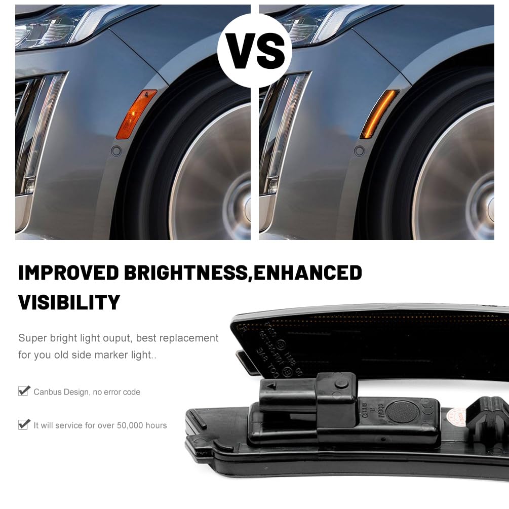 Installation: Direct plug and play installation, perfectly replace factory parts, no wiring cutting or modification needed; this smoked lens ct5 side lights features as a new LED upgrade replacement for your Cadilla.c CT5 front side marker lamps