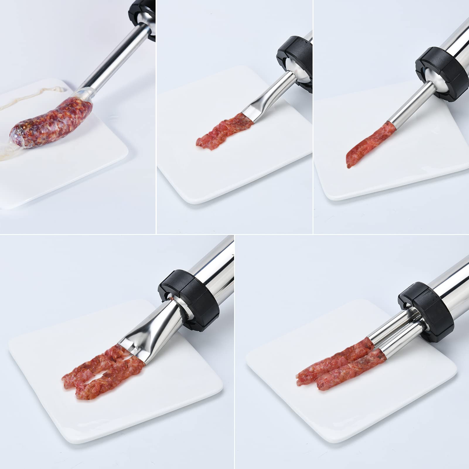 【DURABLE MATERIAL】Our jerky making gun is made of high quality stainless steel. The threading utilize high-quality nylon material, which undergoes a special high-temperature treatment to ensure unrivaled strength and durability. The thickened aluminum handle is not only reduces weight, but also is more durable.