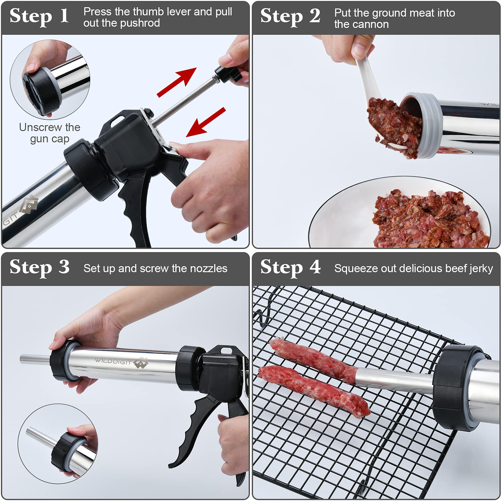 【GODEN COMBINATION】The professional stainless steel jerky gun kits are equipped with food grade stainless steel cannon, 5 stainless steel nozzles, 5 cleaning brushes, for making various jerky and sausages. Our jerky maker has good quality, perfectly for beef jerky fans. Even newbies can easily make delicious beef jerky with this product.