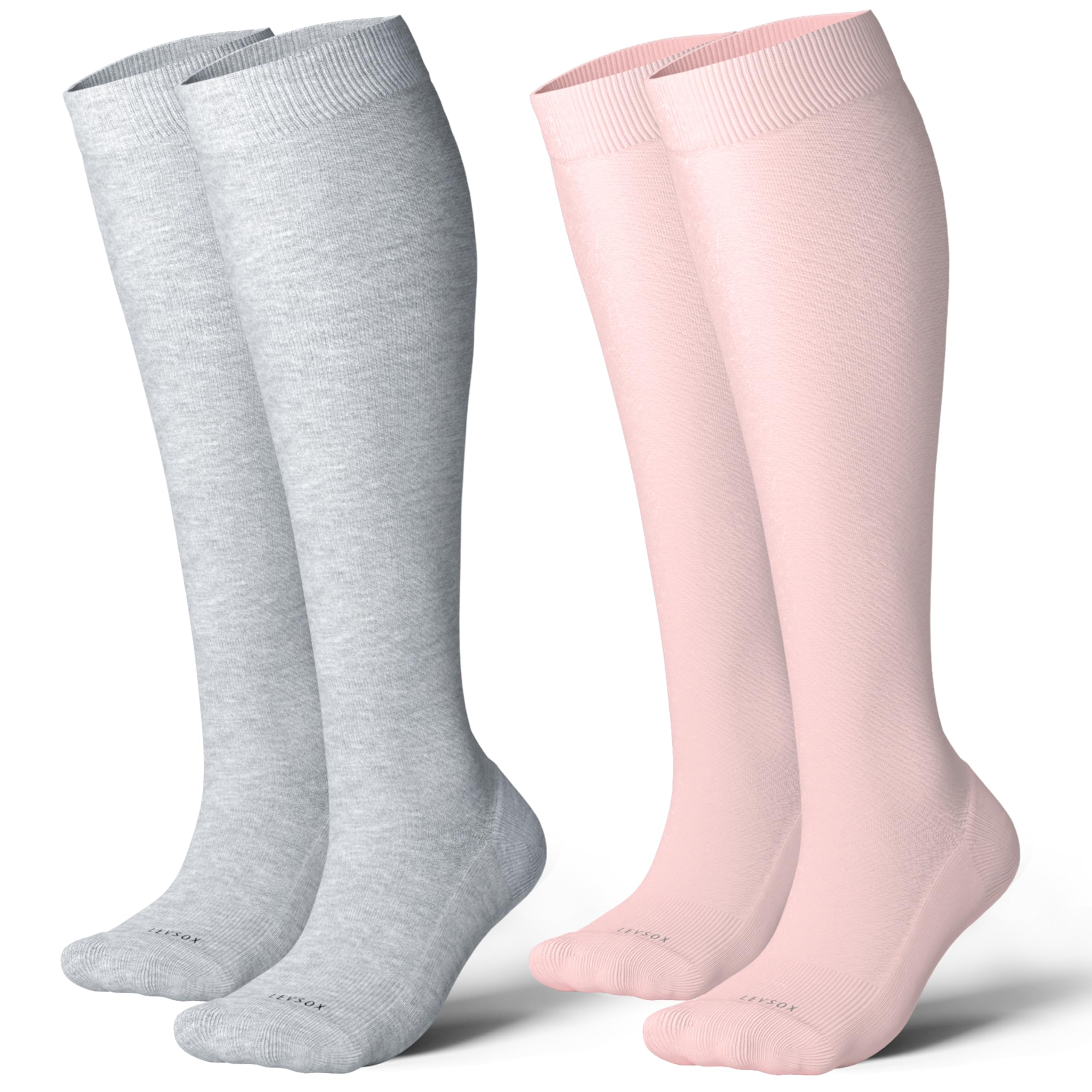 COMPRESSION SOCKS 20-30 mmHg. A Durable Compression Socks have wide variety of fun colors and designs specially for nurses, size rang cover both women and men. Double stitched with functional Fabric and knitted with seamless compression technology. Fits comfortable, easy to get on and delivers 360° support to feet and legs. Knee high long sleeves compression socks make sure the graduated support effect entire calf.